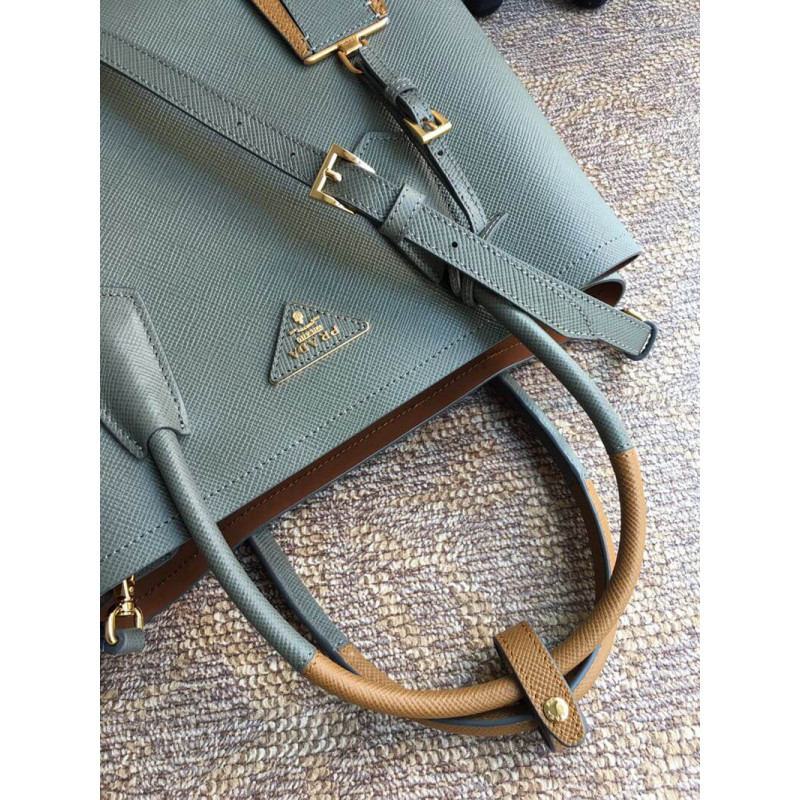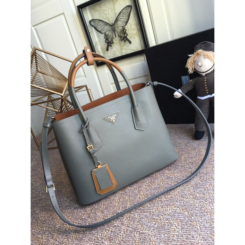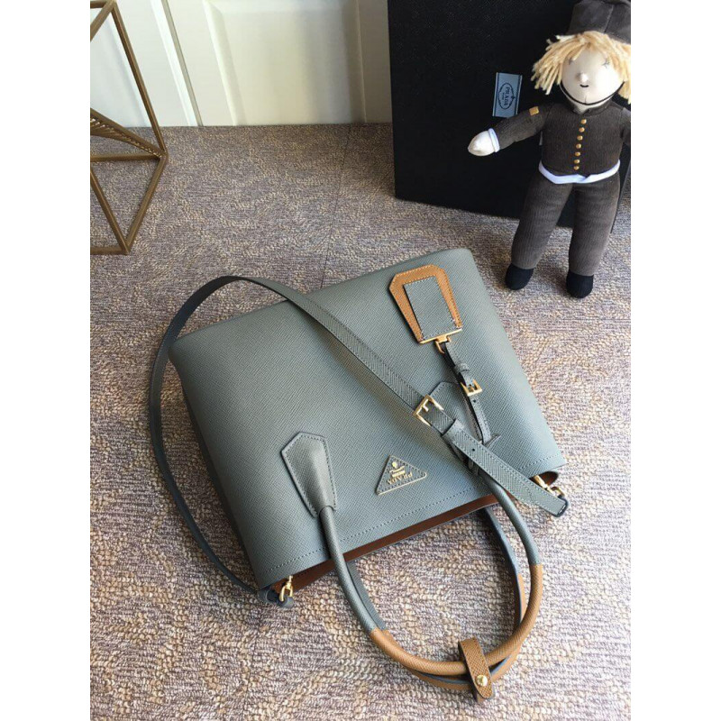 Prada Two-Tone Saffiano Leather Double Bag 1BG775 Grey/Brown