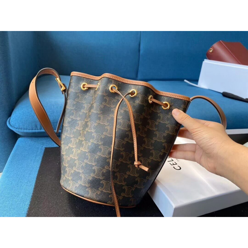 Celine Medium Drawstring Bag In Triomphe Canvas 191392