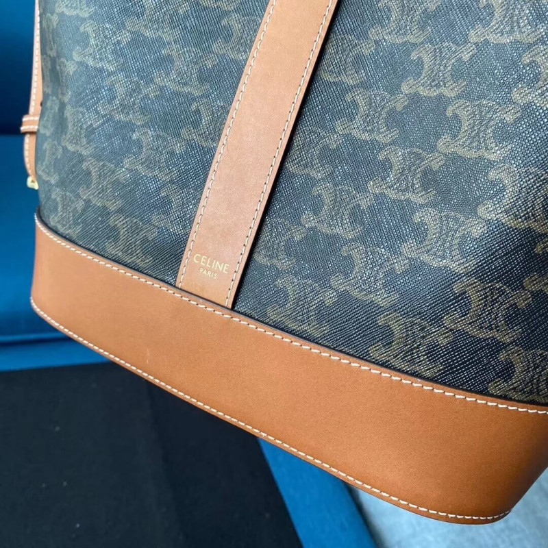 Celine Small Bucket In Triomphe Canvas And Calfskin 191442