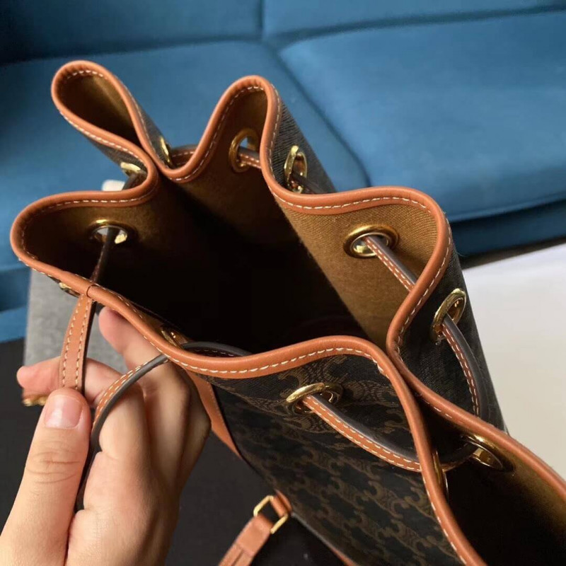 Celine Small Bucket In Triomphe Canvas And Calfskin 191442