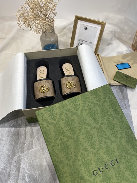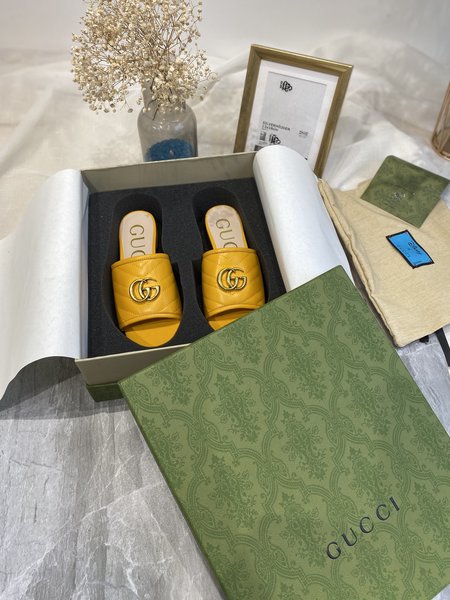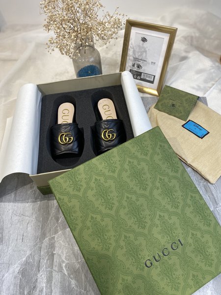 Gucci GG buckle slippers Quilted leather slippers calfskin + canvas lining sheepskin