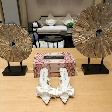 Jimmy Choo High-heeled hollow leather pointed toe sandals slippers