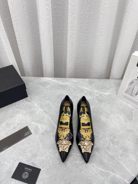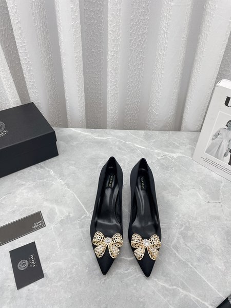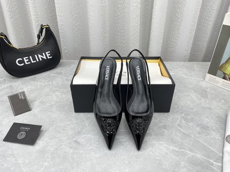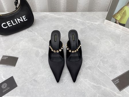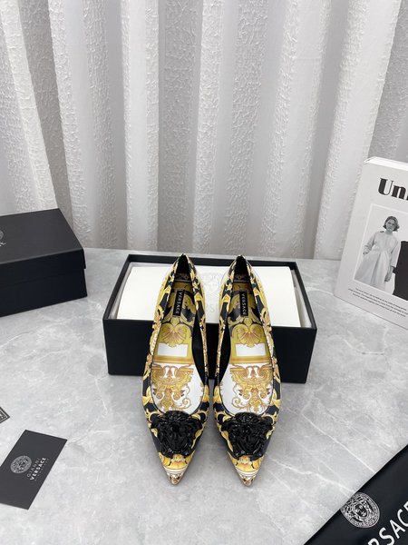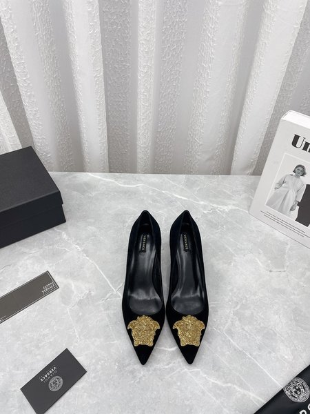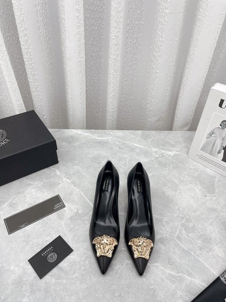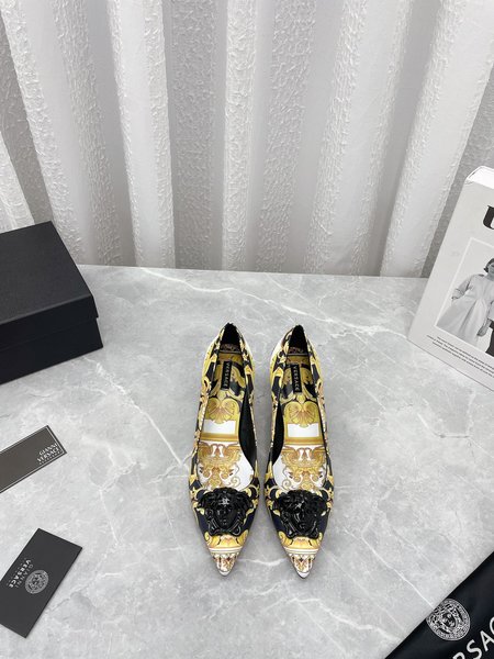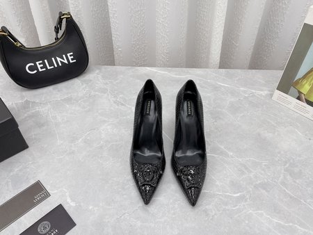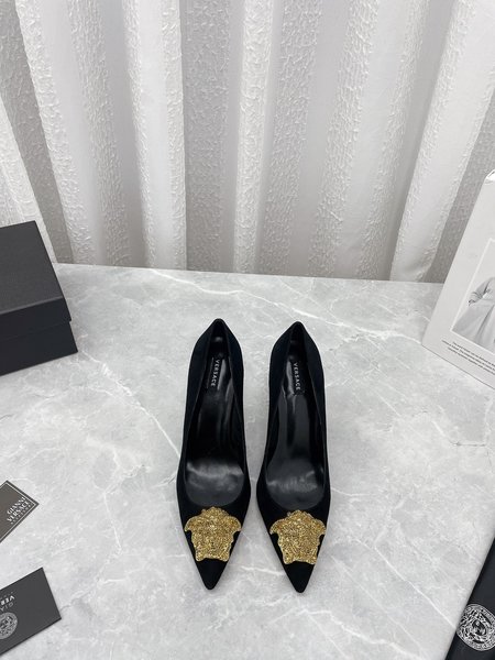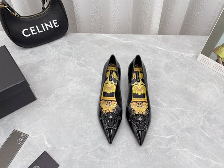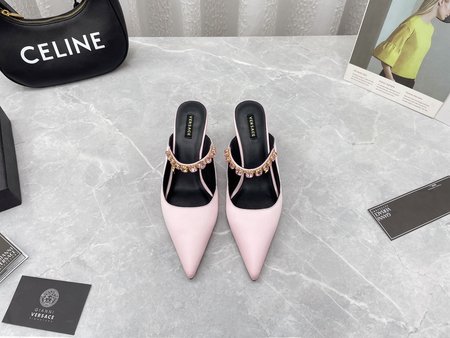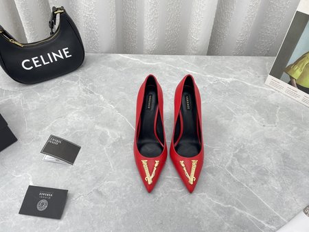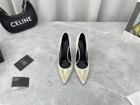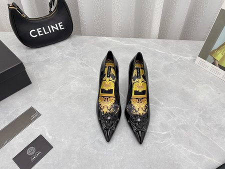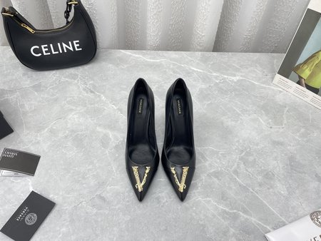 Versace Pointed toe V-shaped buckle high-heeled women s shoes