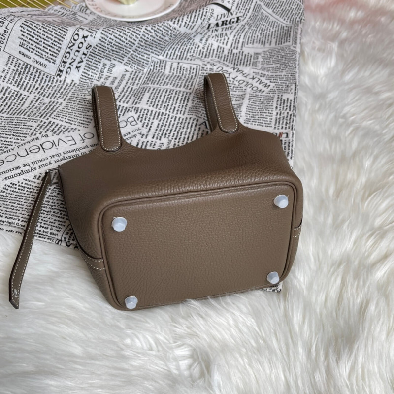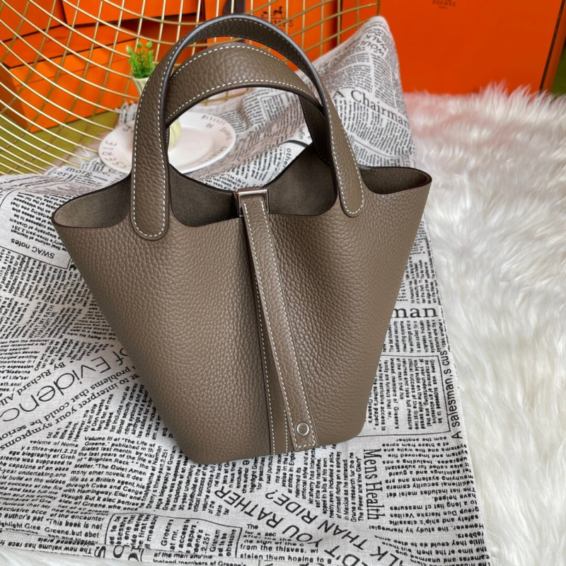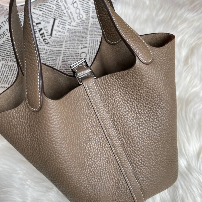 Hermes Picotin Lock Bag in Taurillon Clemence Etoupe Grey