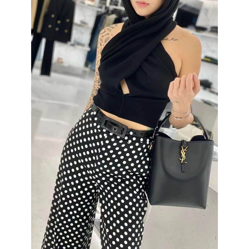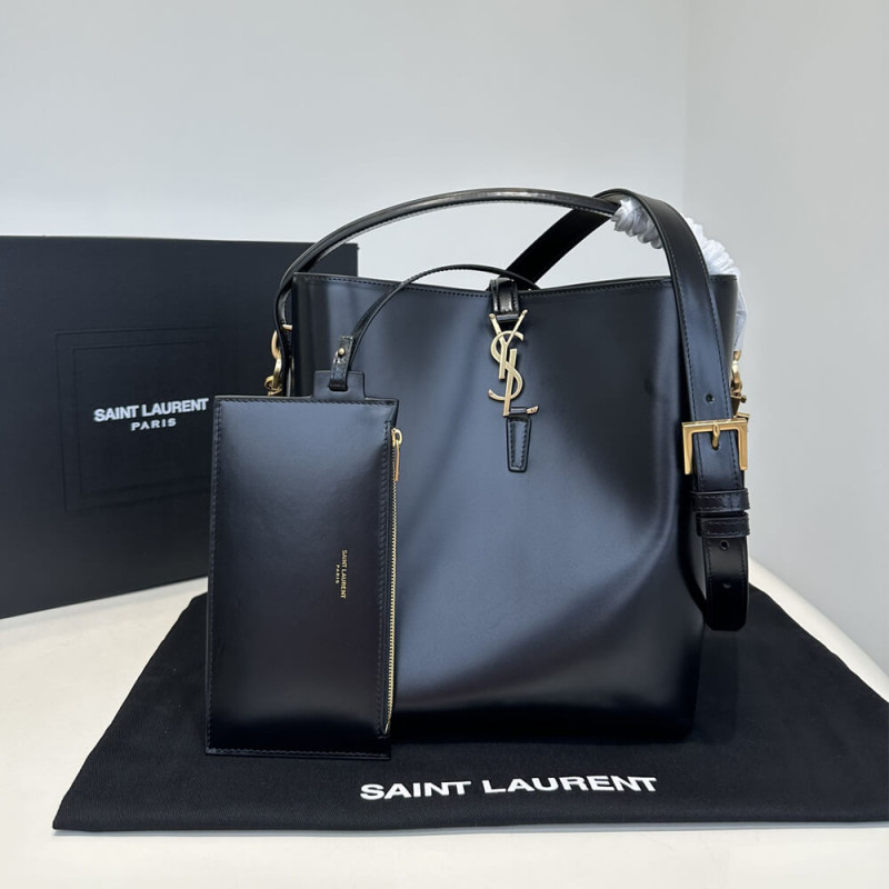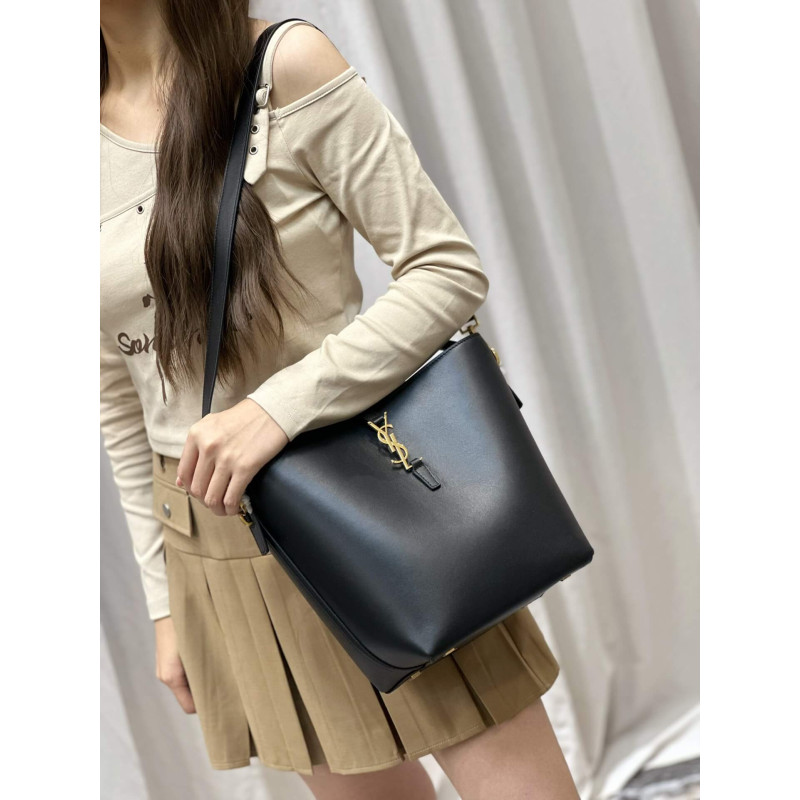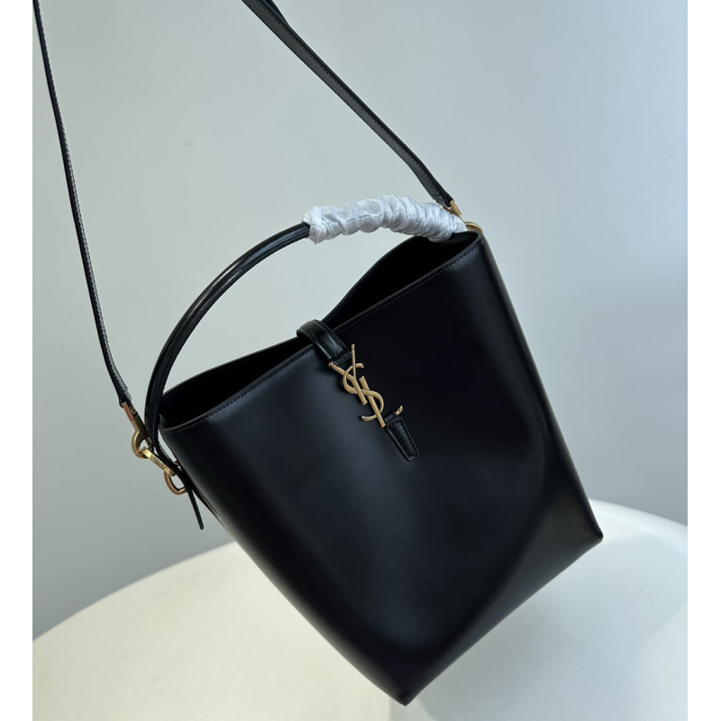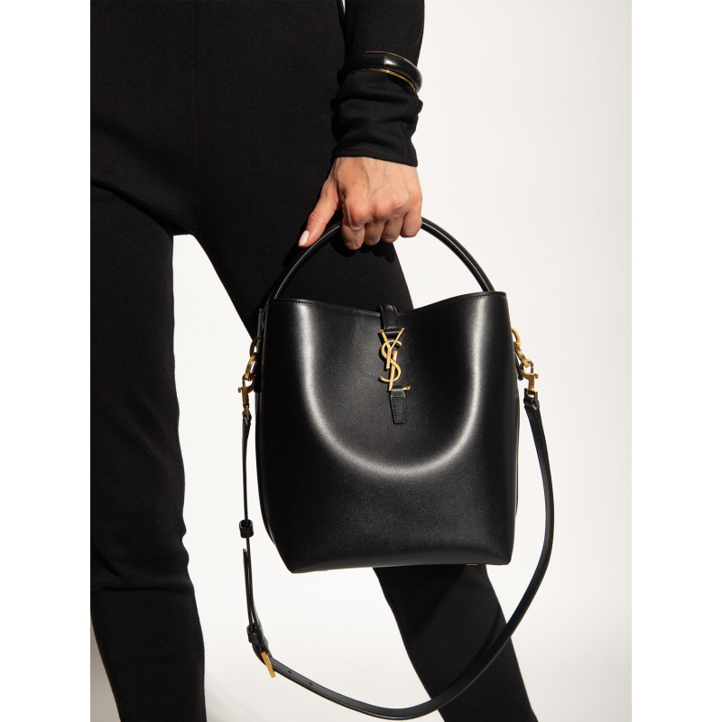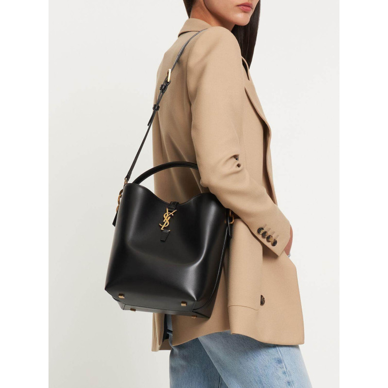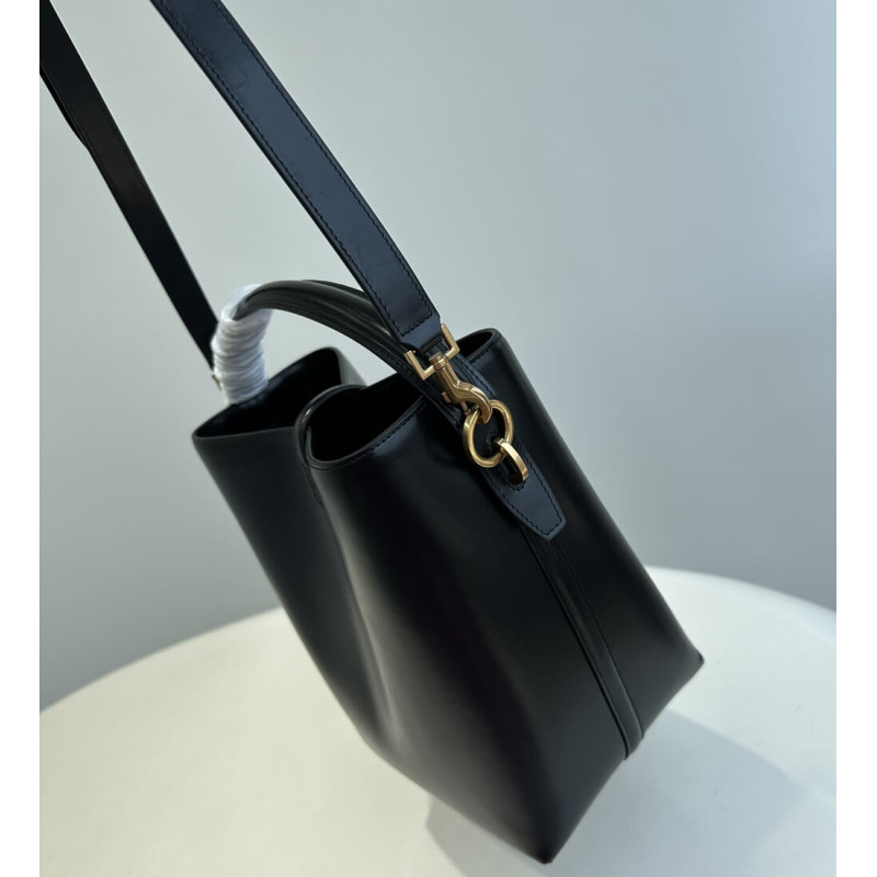 Bucket bag featuring the cassandre hook closure, top handle and an adjustable and detachable shoulder strap.