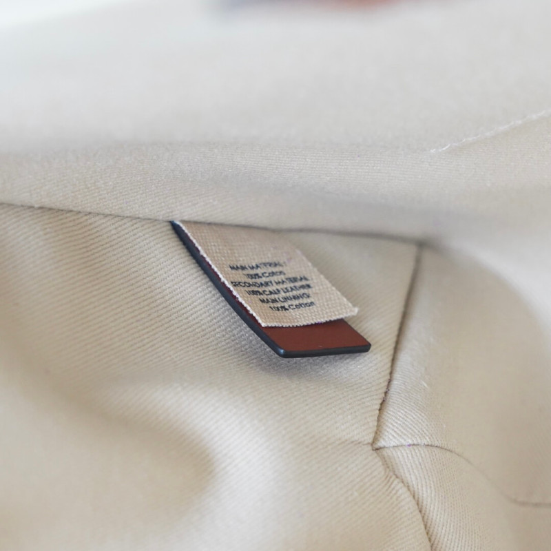 Crafted from lower-impact linen canvas detailed with shiny calfskin strips, this medium Woody tote bag is a spacious bag with a strong summer attitude. The roomy inside compartment includes a practical flat pocket.