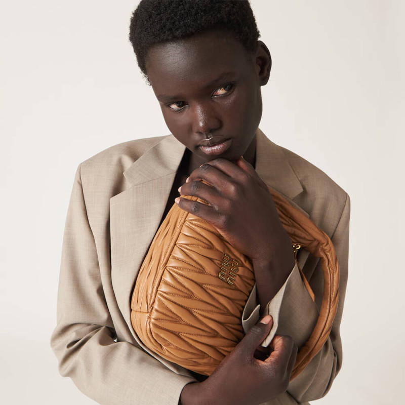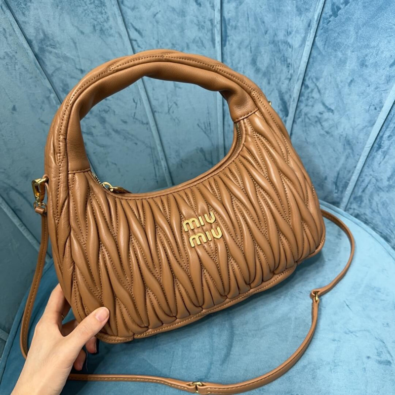 Miu Miu Wander Matelasse Nappa Leather Hobo Bag 5BC153 Caramel