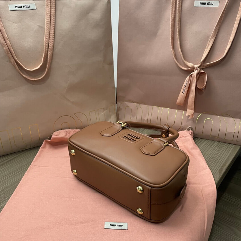 This Arcadie leather bag expresses a notion of fashion as a means of translating a reaction to current reality into material form. The light padding gives the bag a voluminous look and a cosmopolitan style. The lettering logo, which echoes the finishes of the metal hardware, crosses the boundaries between function and decoration and helps to define the distinctive and iconic aesthetic of the top-handle bag.