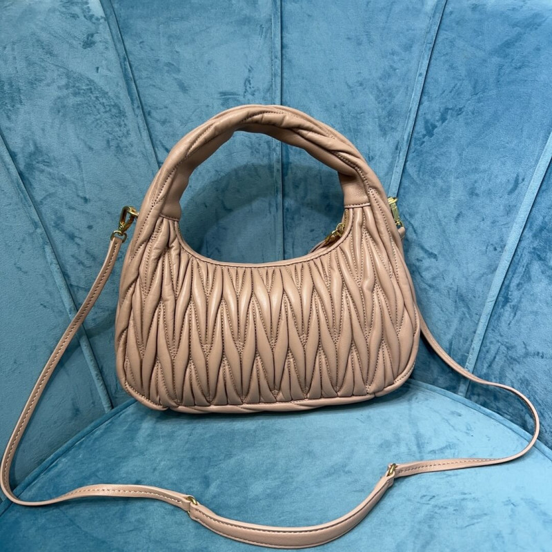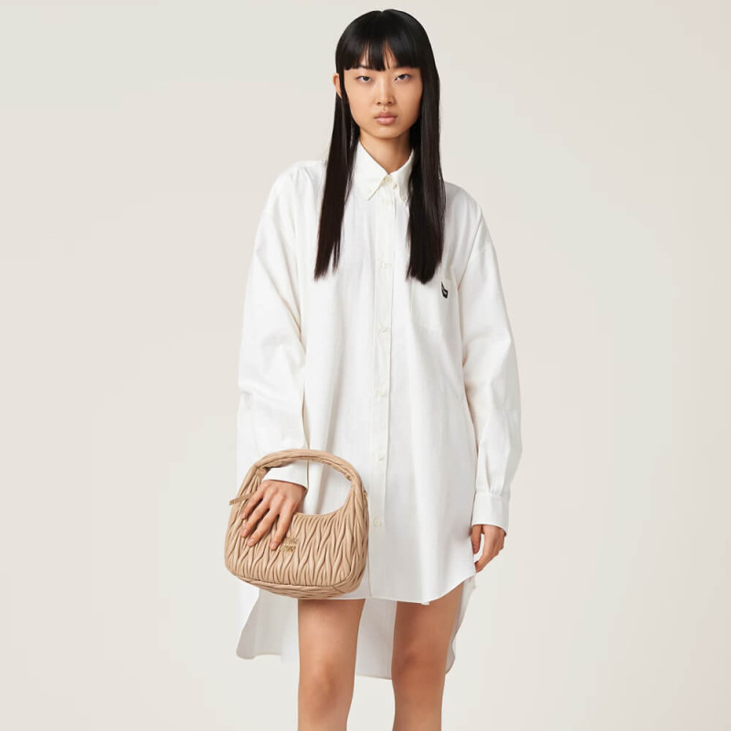 The luxurious matelassé motif gives a three-dimensional, textured, and extremely sophisticated look to the compact lines of the new Wander bag in matelassé nappa leather. The alluring metal logo that echoes the gold-tone hardware stands out against the refined artisan technique with an iconic, shiny and immediately recognizable touch. The sleek lines and removable shoulder strap define the elegant yet dynamic silhouette.