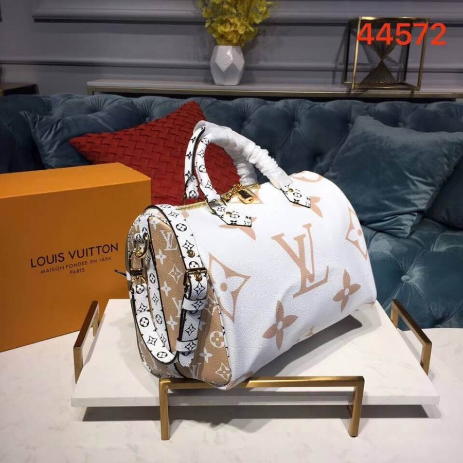 A House icon since the 1930s, the Speedy Bandoulière handbag is dressed for Summer 2019 in the season’s signature print: a playful mix of XL and Mini Monogram motifs in a fresh, appealing palette. Carried by the twin Toron handles or worn casually cross-body, this exclusive Speedy 30 is the perfect complement to summery silhouettes.