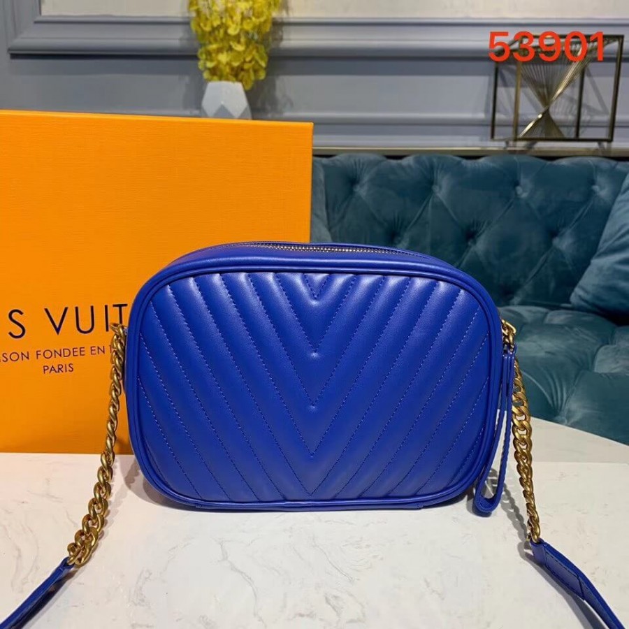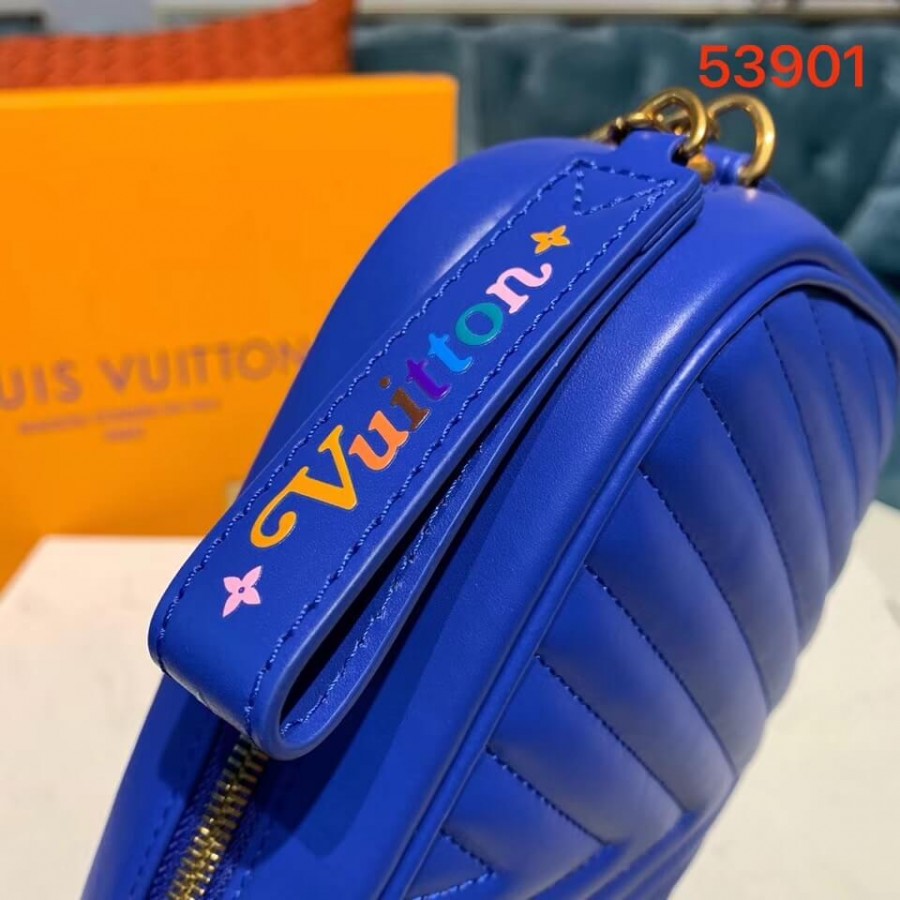 For Spring-Summer 2019, Louis Vuitton launches the New Wave Camera Bag in quilted calf leather. Its distinctive shape is signed with a vintage gold-tone LV and a comfortable leather-and-chain strap for wearing on your shoulder or carrying cross-body at the hip. The zip pull with its colorful Vuitton and New Wave quilted leather bring a modern feel.
