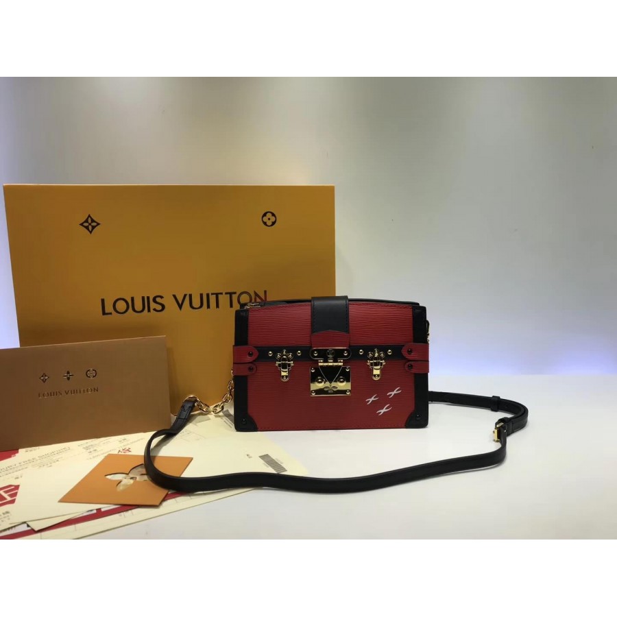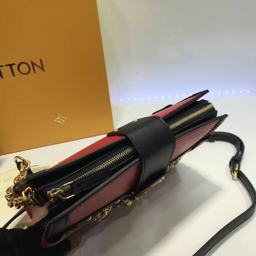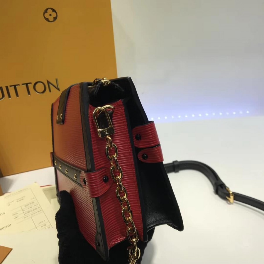 The Trunk Clutch handbag nods to House heritage with a host of refined details inspired by classic Louis Vuitton trunks: note the S-lock clasp, leather trim and Malletage-print lining. Supple yet structured, made from textured, deep-dyed Epi leather, it is also lightweight, with room enough for everyday essentials. A removable chain-and-leather strap multiplies the carry options for this fashionable, signature piece.