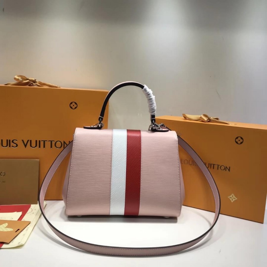 This Cluny BB handbag’s structured silhouette is crafted of grained Epi leather with smooth leather trim and two eye-catching stripes. The two-tone stripe, a theme seen on shoes at the Fall 2018 Collection, is a nod to the House’s tradition of personalizing its historic trunks. Silver-tone hardware pairs with colorful touches to complete this bag’s distinctive look.