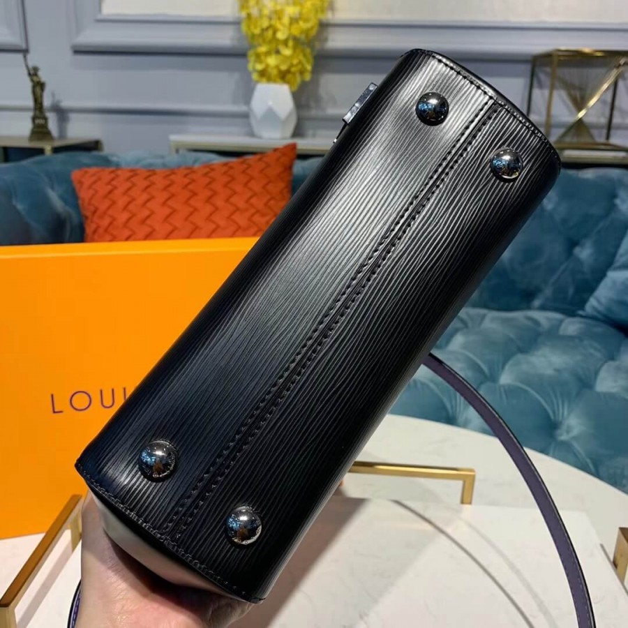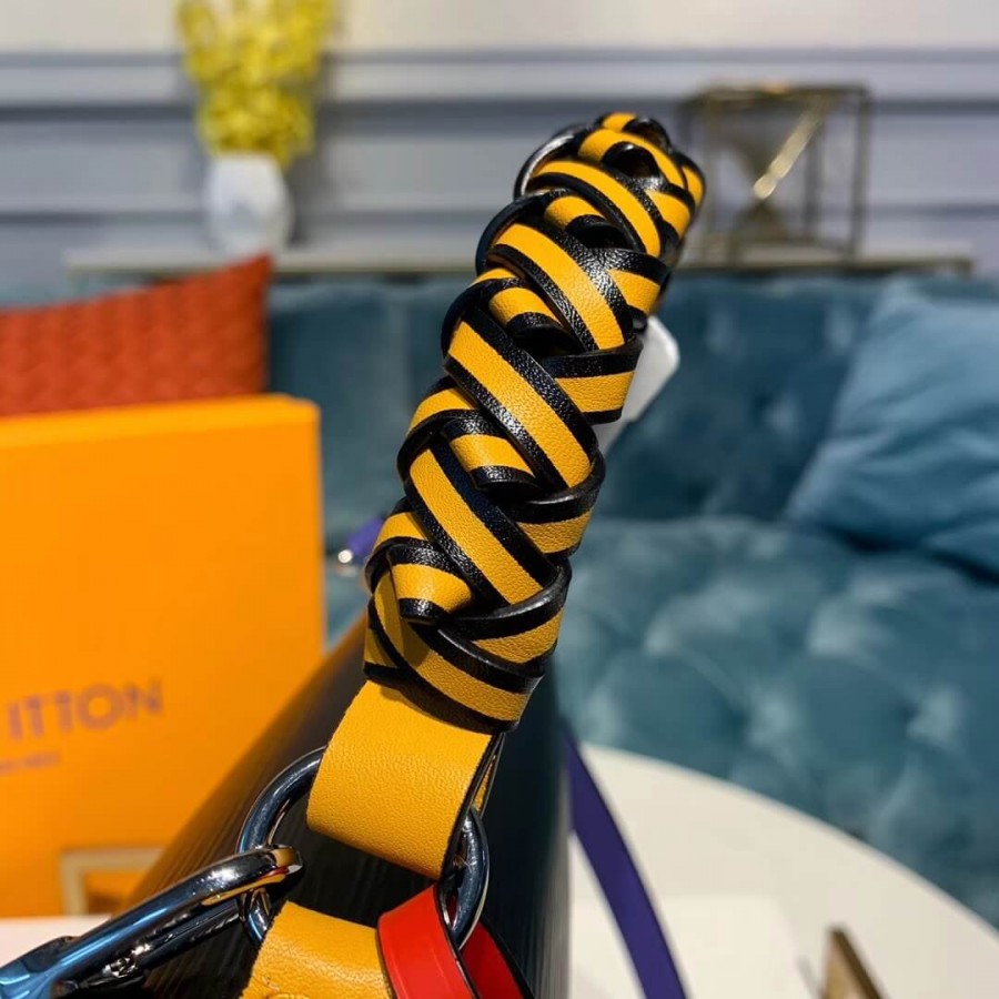 Featuring a braided top handle for Fall 2019, the Cluny BB handbag in grained Epi leather comes in an exciting mix of contrasting colors. Louis Vuitton’s superior leather craftmanship is visible in the hand-painted edge dyeing on the braids. The top handle enables hand carry whilst the removeable strap offers shoulder options.