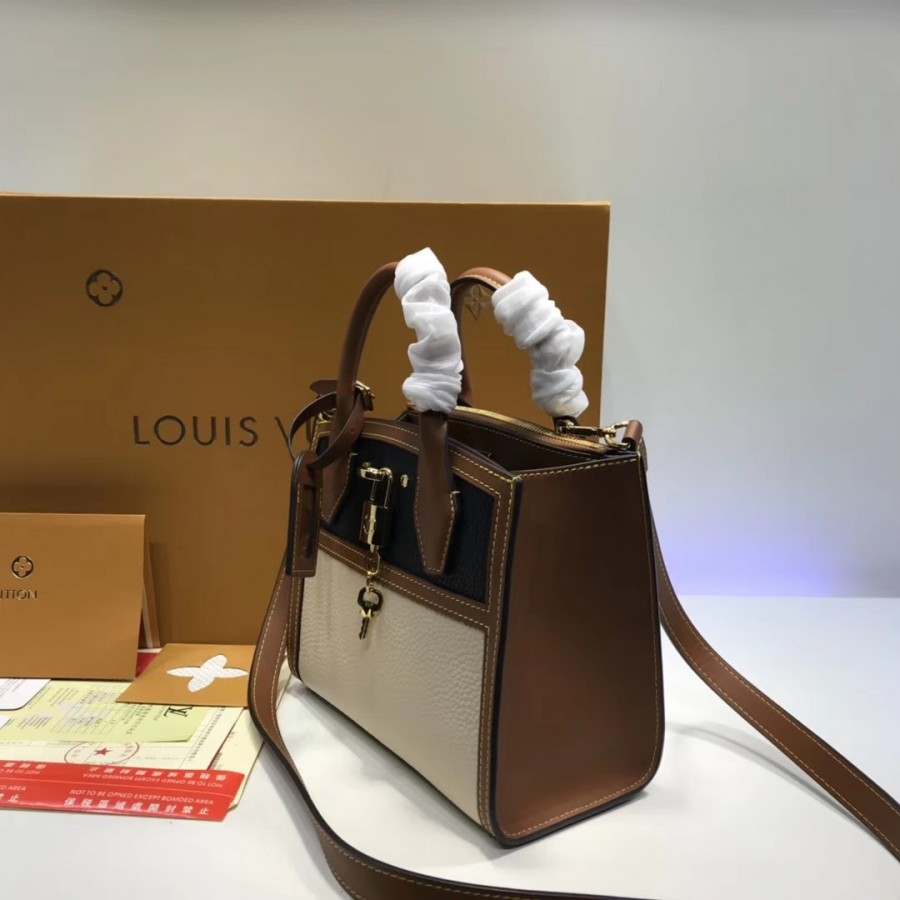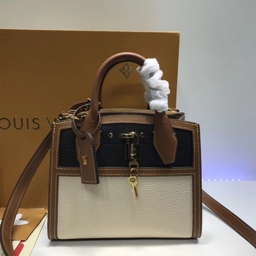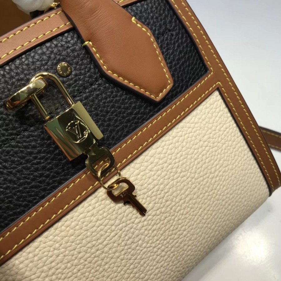Blue and beige Taurillon leather, framed in smooth tan calf, create an elegant contrast on this City Steamer Mini handbag. Ideally sized for evening, it displays all the House signatures that make this New Classic bag so distinctive. Fitted with Toron top handles and a removable strap, it can be carried in several fashionable ways.