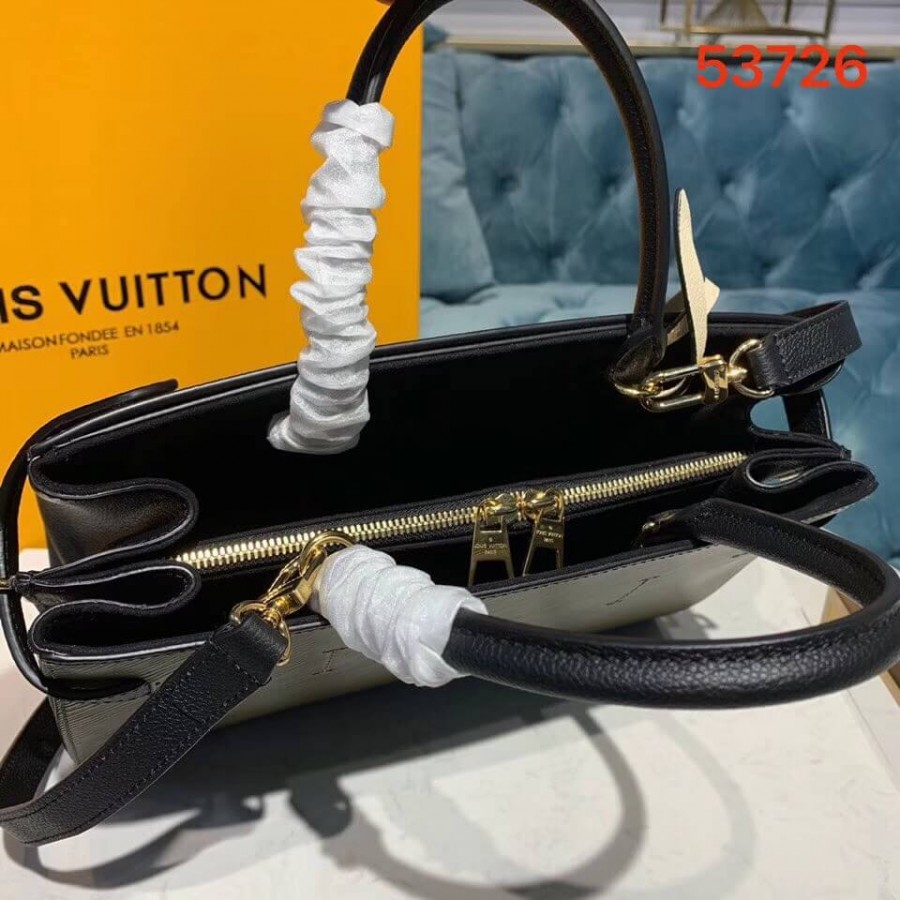 This sleek Twist Tote in Epi leather features the transforming LV Twist lock that has become a House signature. Equipped with multiple pockets and side straps that adjust its capacity, the bag is an elegant choice for day-to-business use. It is versatile, too, with Toron handles for hand or elbow carry and a removable strap for over-the-shoulder wear.