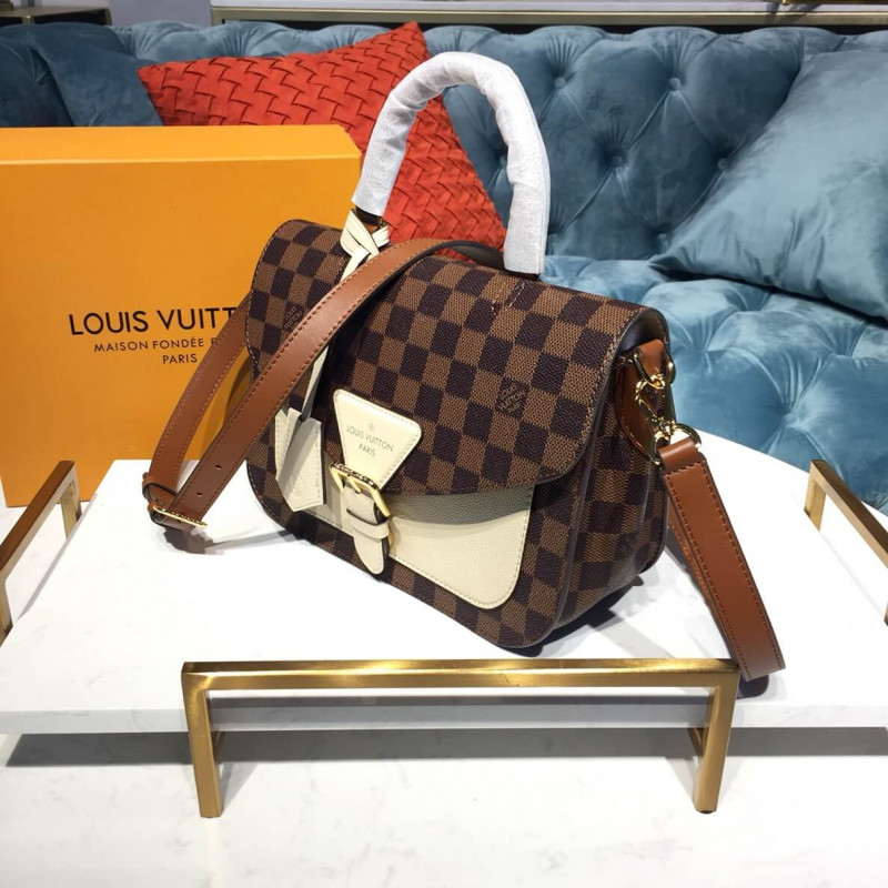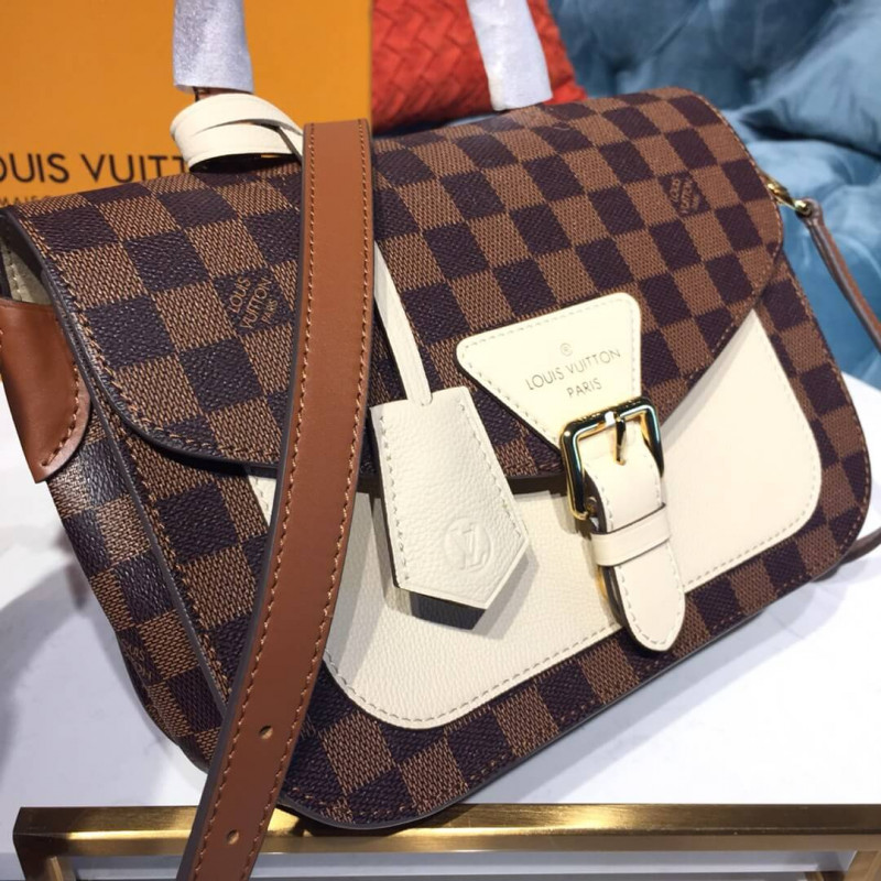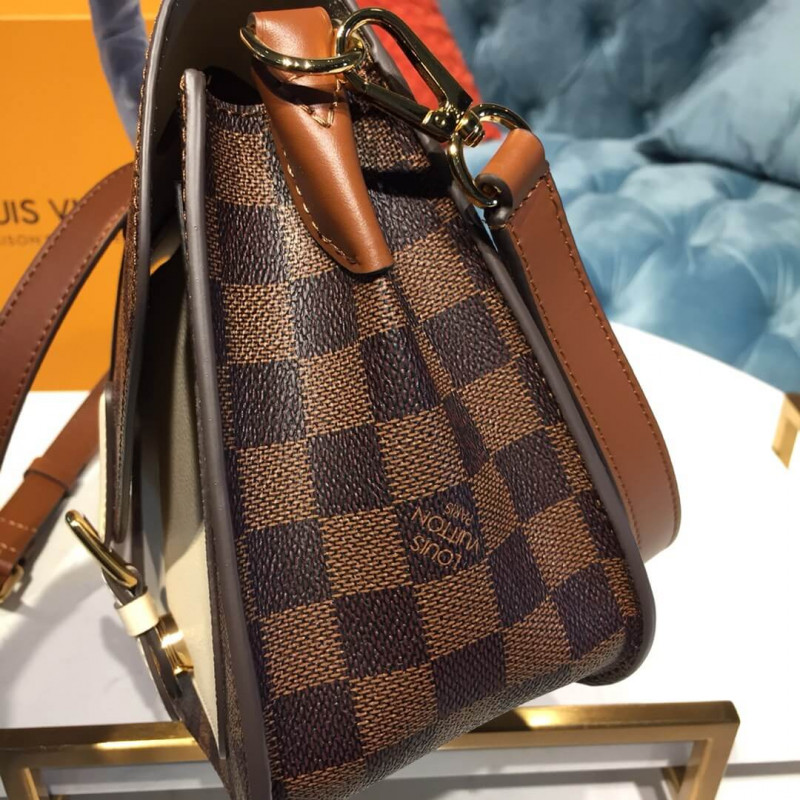 - Damier Ebene coated canvas and small-grain cowhide leather