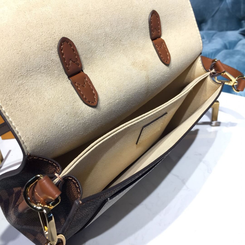 The Beaumarchais is a compact flap bag crafted from Damier Ebene coated canvas, with contrasting details in supple, small-grain leather. Equally at ease with casual looks or city-chic styles, this on-point piece holds a long wallet as well as day-to-day essentials. The long leather strap and top handle offer a variety of carry options.