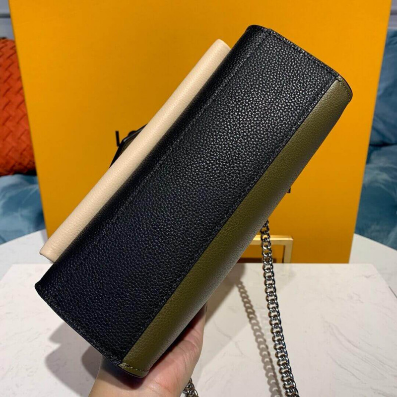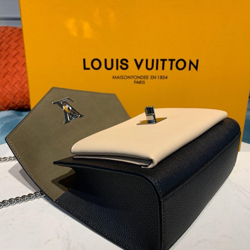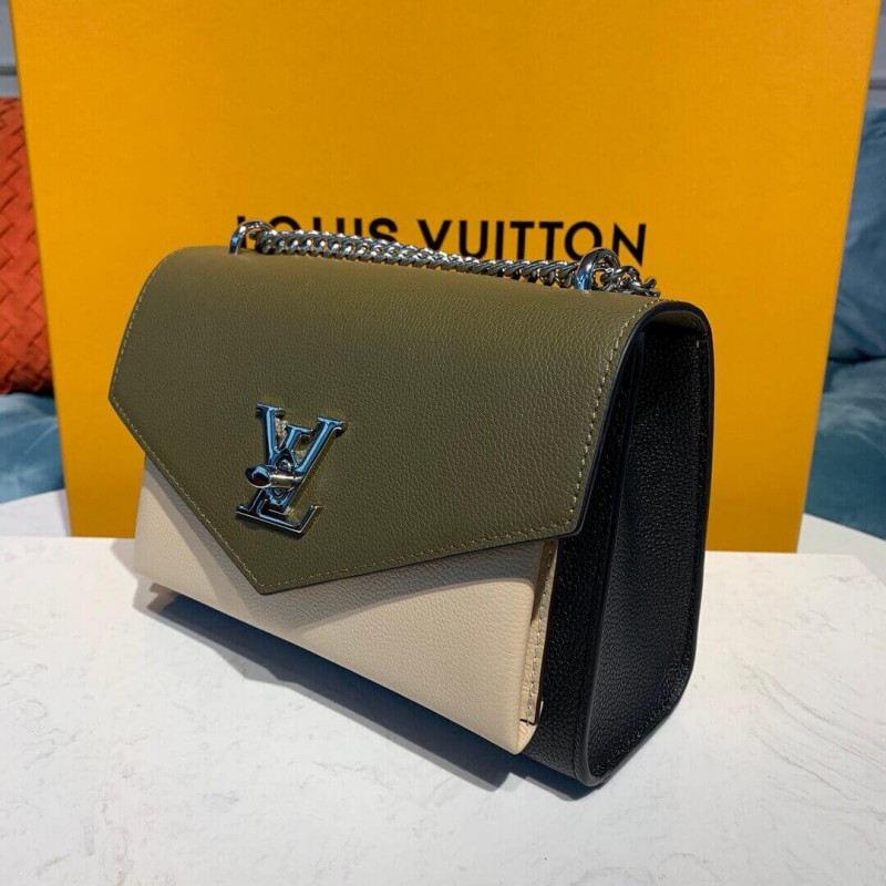For Spring Summer 2019, the Mylockme BB bag comes in a soft summery colorway of pink, off-white, and burgundy calfskin. The luminous color combination is completed by the silver color of the signature LV turn lock and the adjustable chain strap. The chain’s leather pad brings comfortable to shoulder carry and crossbody wear.