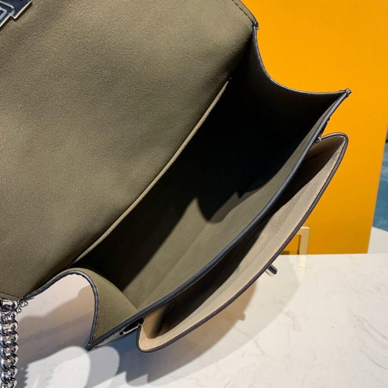- Adjustable chain strap (drop: min 11 inches, max. 20 inches) with a leather pad for shoulder carry or crossbody wear