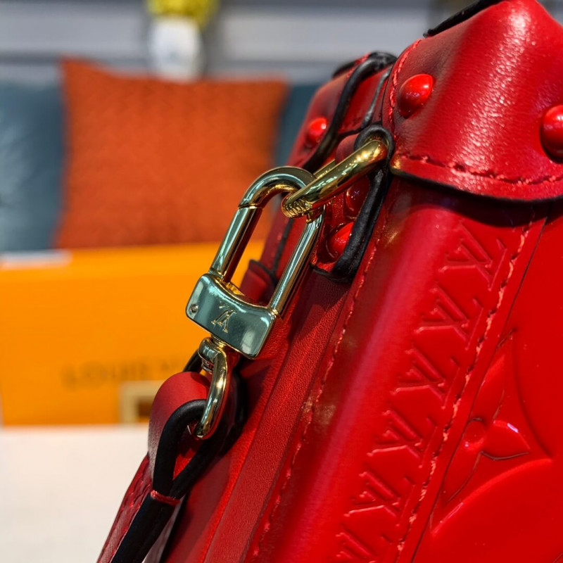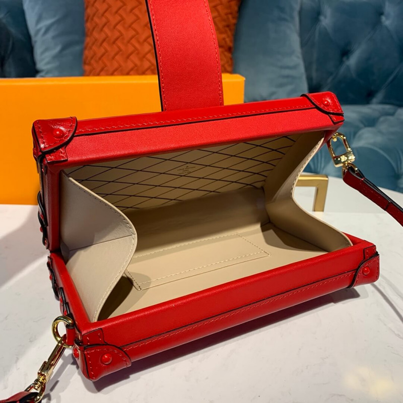 Introduced for Pre-Fall 2019, this edition of the Petite Malle is crafted from lustrous Monogram Vernis embossed patent leather. The covetable “little trunk” makes a glamorous statement with evening silhouettes, either carried as a clutch or worn on the removable leather strap. The drop can be adjusted for shoulder or cross-body wear.
