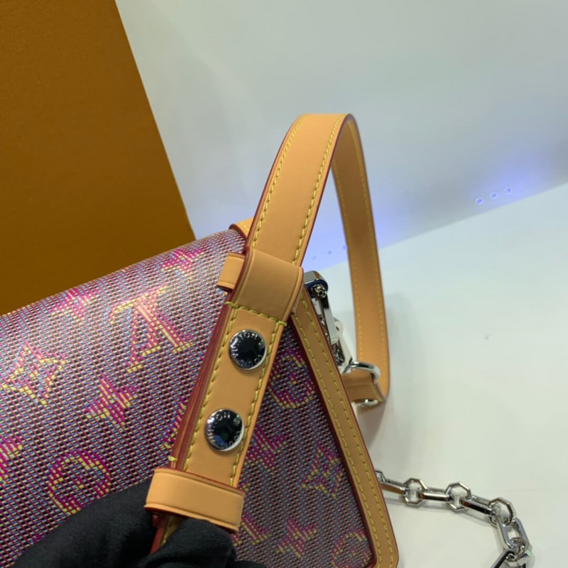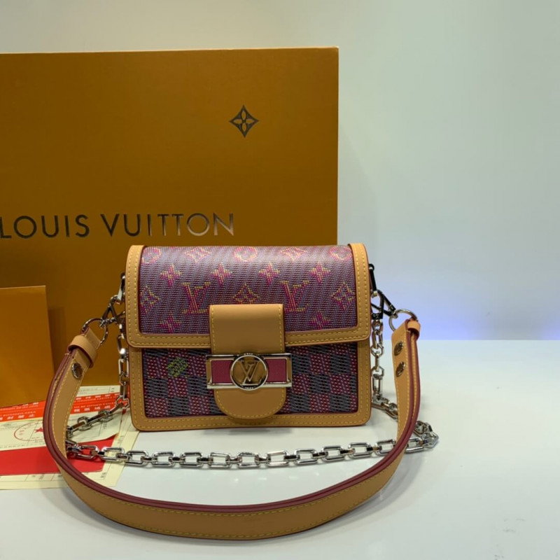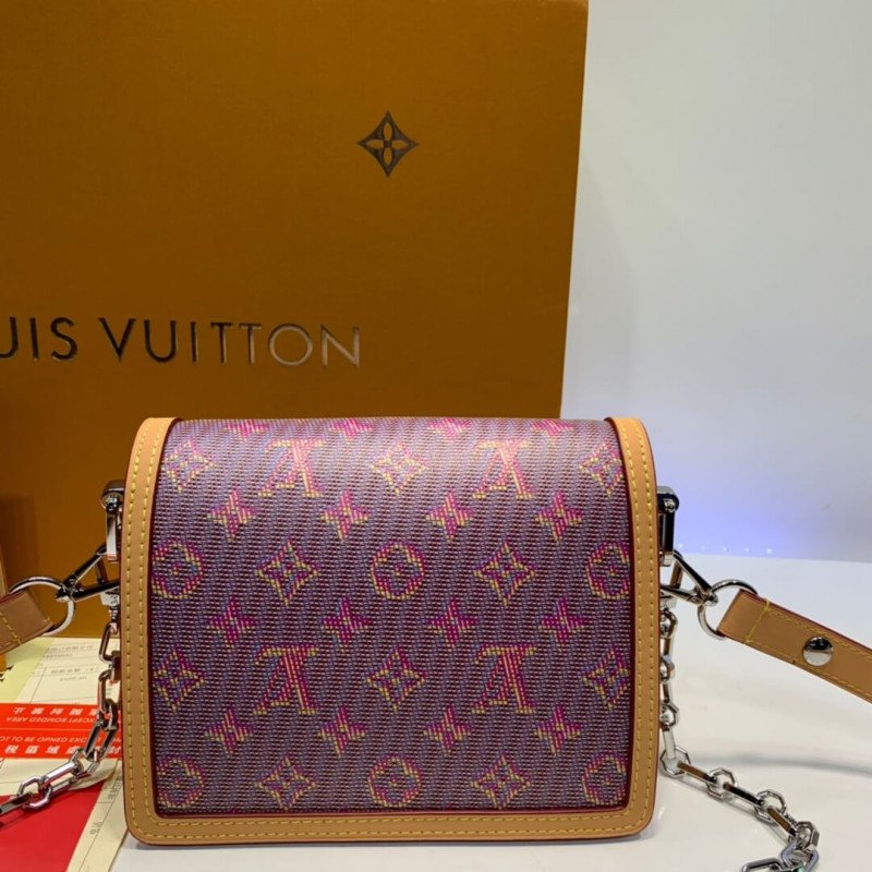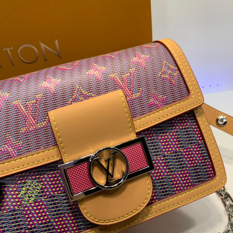 The Mini Dauphine handbag is fashioned from calf leather adorned with the eye-catching electric blue Monogram LV Pop print. This retro-chic bag features the distinctive Dauphine LV lock, decorated with blue guilloché engraving. The Mini Dauphine can be carried as a clutch or worn over the shoulder or cross-body thanks to its removable leather strap.