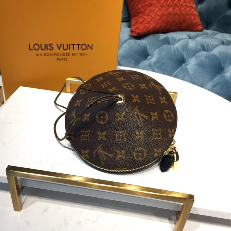 For Spring-Summer 2019 Nicolas Ghesquière presents his interpretation of a modern minaudière: the Toupie handbag, made from timeless Monogram canvas accented with golden hardware. The playful “top” shape of this miniature bag is sure to draw notice wherever it goes. The long Monogram canvas cord lends itself to hand or shoulder carry.