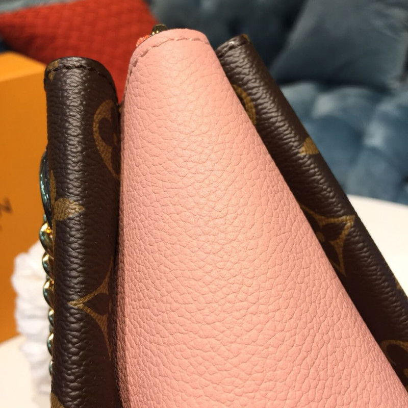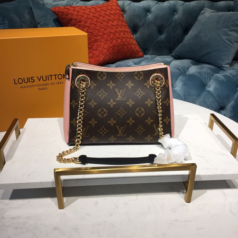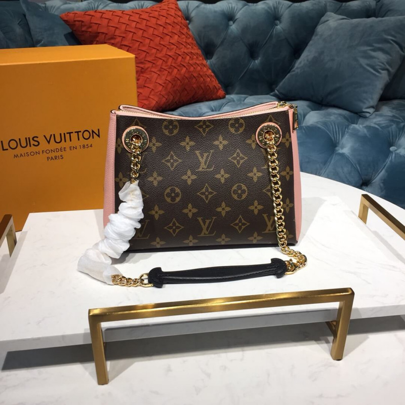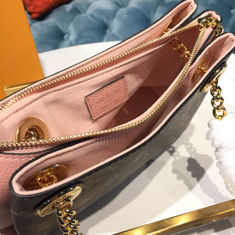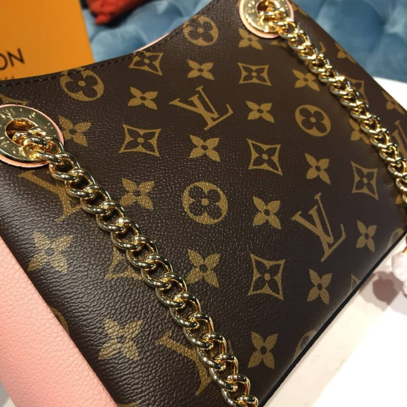 The Surene BB handbag in Monogram canvas and grained calf leather with a gold-color sliding chain is Louis Vuitton’s new chain bag. Its sleek shape is enlivened with gold-color hardware and the generous use of leather trim. The perfect casual-chic bag, it is lightweight, versatile, body-friendly and easy to wear.