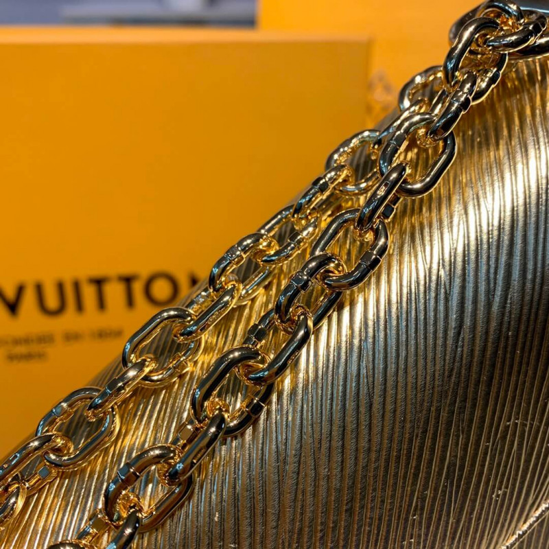 The Twist PM handbag comes in gold Epi leather as part of the LV Love Lock collection. The grained leather is ornamented with tiny locks, keys and Monogram Flowers in pink and silver-tone metal. This neatly proportioned bag can be carried on the shoulder or across the body thanks to its sliding chain.