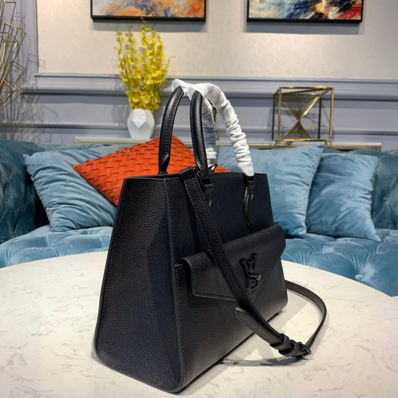 Timeless design and modern functionality unite in the Lockme Monochrome Tote PM. Fashioned from soft grained calf, this bag gets its stylish edge from the tone-on-tone LV turn lock and hardware. A refined choice for everyday wear, this model offers multiple carry options thanks to the signature Toron top handles and an adjustable, detachable shoulder/cross-body strap.