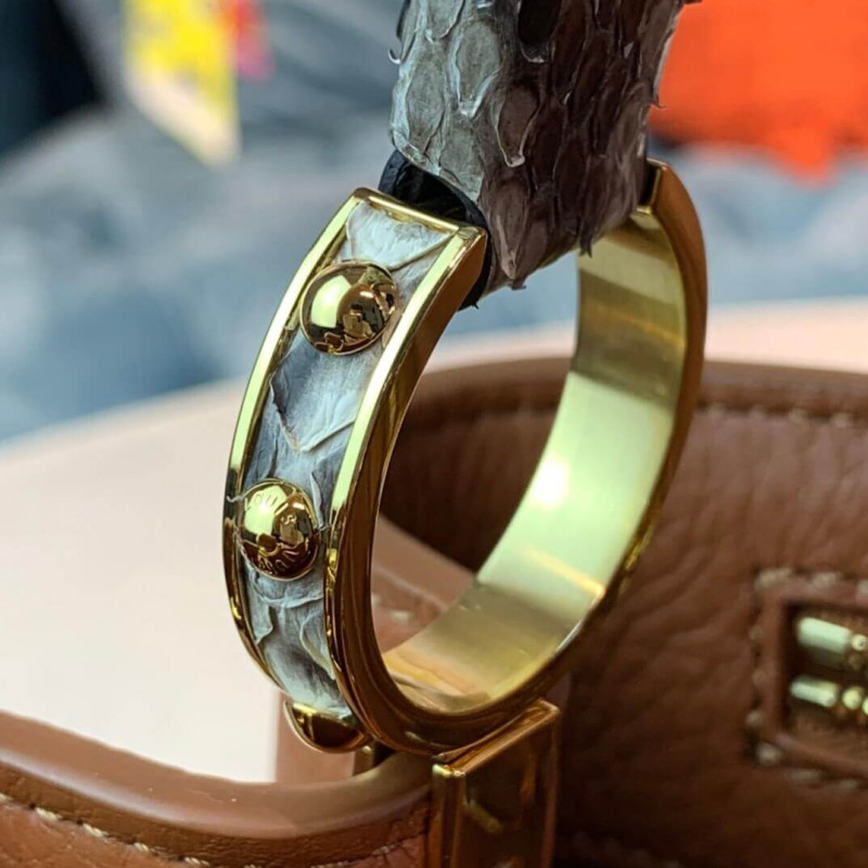 - Taurillon-leather and python-skin trim