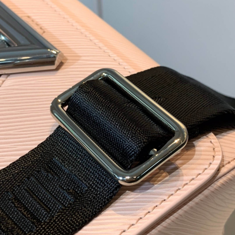 - Sliding chain strap with leather pad (drop: min. 30 cm/11.8 inches, max. 56 cm/22 inches) for shoulder and cross-body carry
