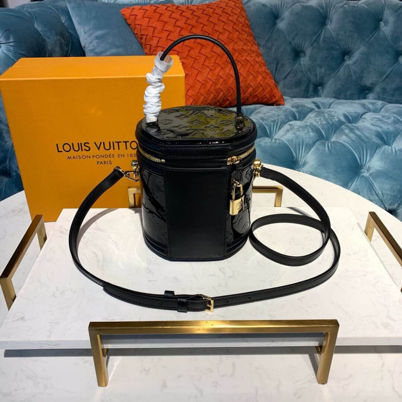 The Cannes handbag is inspired by that indispensable piece of feminine luggage: the beauty case. For Pre-Fall 2019 its modern, cylindrical silhouette is crafted from lustrous Monogram Vernis embossed patent leather. A sophisticated evening companion, this versatile bag is perfectly sized to hold the essentials, and can be carried in a number of stylish ways.