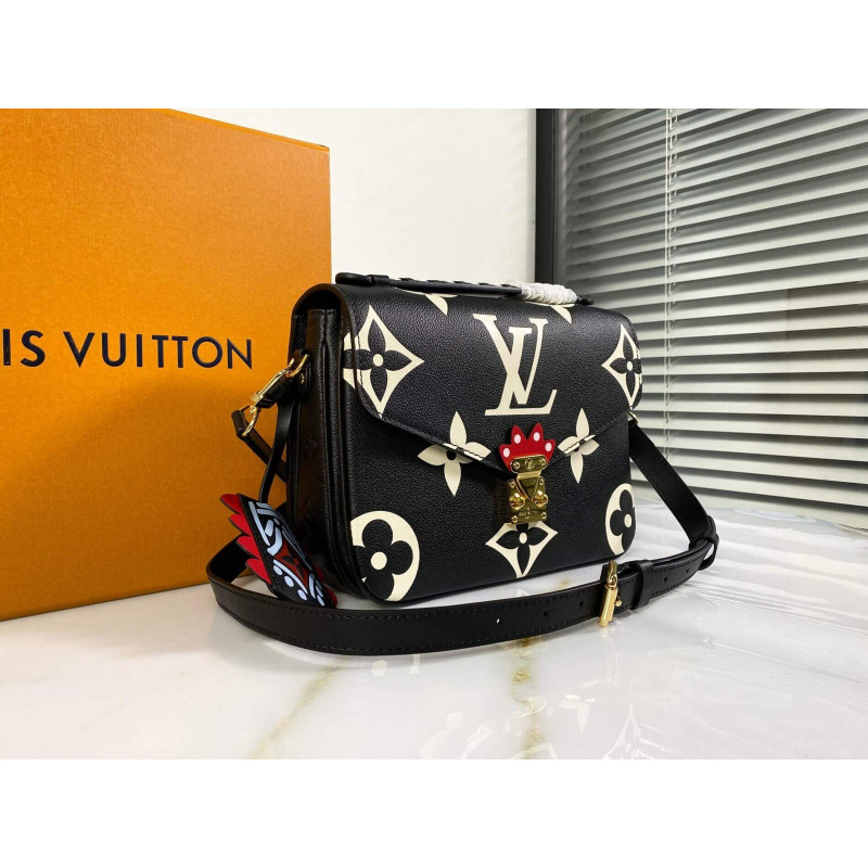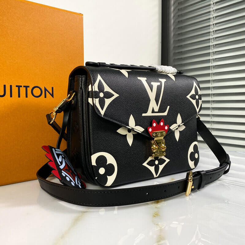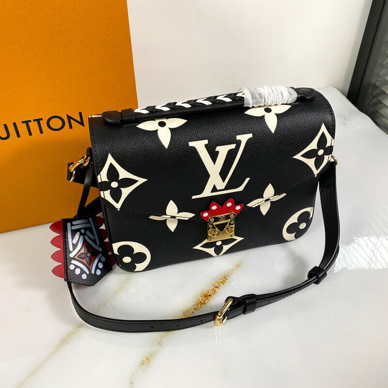 Made from embossed leather with an extra-large Monogram print, the Pochette Métis handbag is visually striking. Fashionable features such as a braided top handle and a graffiti-inspired charm and detailing around the S-lock closure bring added visual excitement. A removable and adjustable strap ensures comfortable shoulder and cross-body wear.