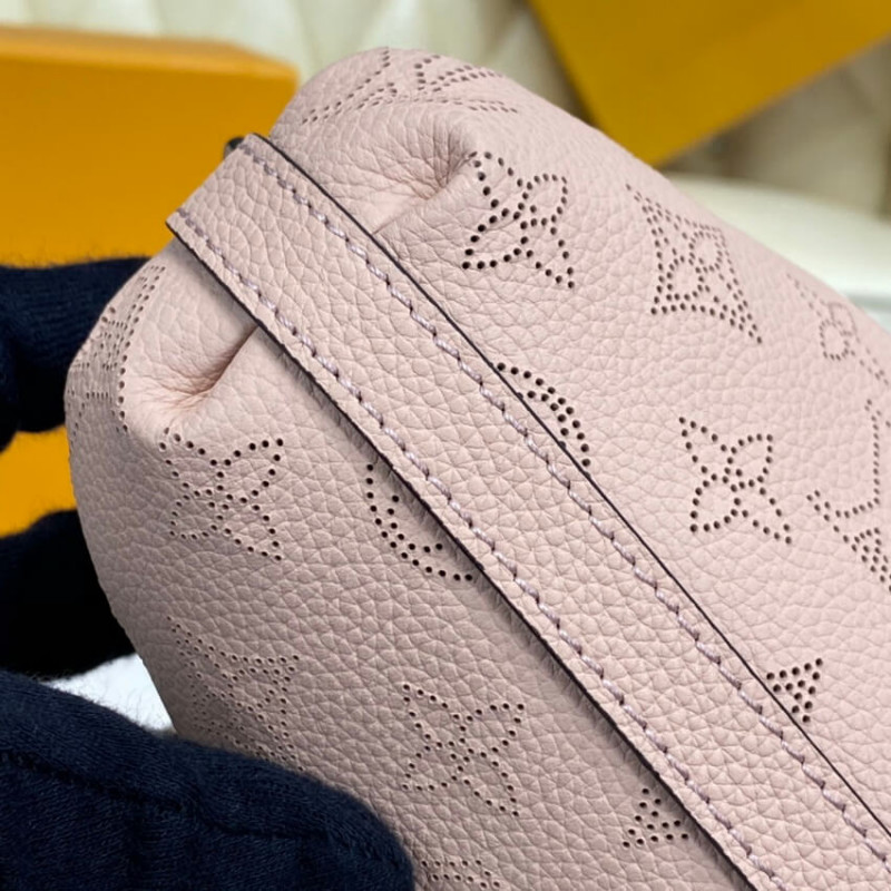 The Scala mini pouch has a soft, body-friendly shape inspired by the folds and pleats of drapery. It is crafted from supple Mahina calf leather, whose delicate perforations replicate Louis Vuitton s iconic Monogram pattern. Large enough to hold everyday essentials, it has a removable, adjustable strap, enabling it to be carried in several different ways.