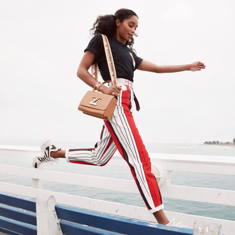 The iconic lines of the Twist MM handbag are revamped with a wide Jacquard strap. Embroidered with Louis Vuitton on one side and Monogram Blossoms on the other, the removable strap enables short cross-body carry. This Twist can also be carried by hand or worn on the elbow, thanks to a removable leather handle.