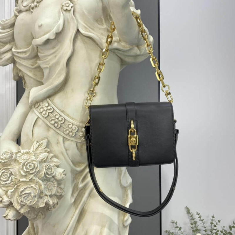 Fashioned from calfskin leather, the Rendez-Vous handbag combines edgy design details with elements inspired by the House’s trunkmaking legacy. It features a chunky chain and a distinctive vintage-inspired lock. The Rendez-Vous can be worn cross-body and on the shoulder, thanks to the chain and strap, or carried by hand.