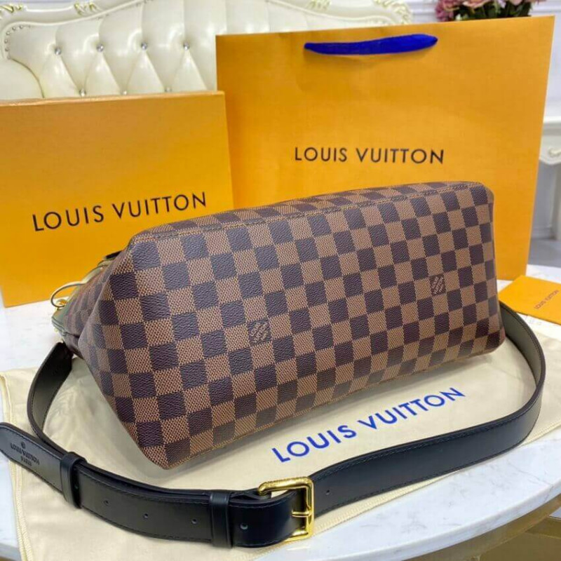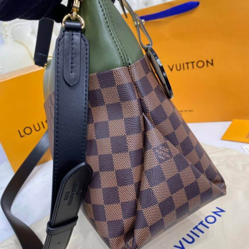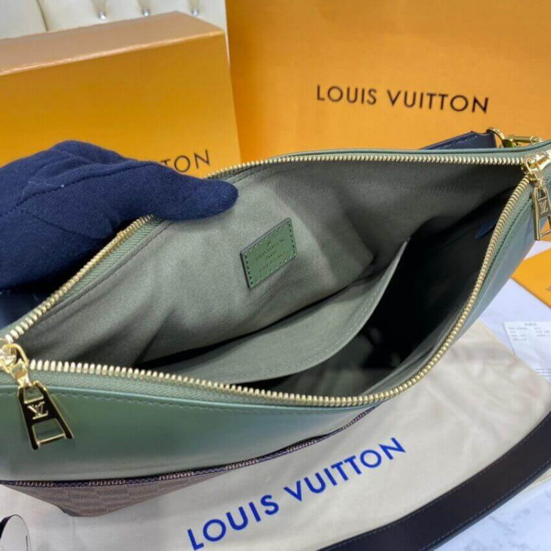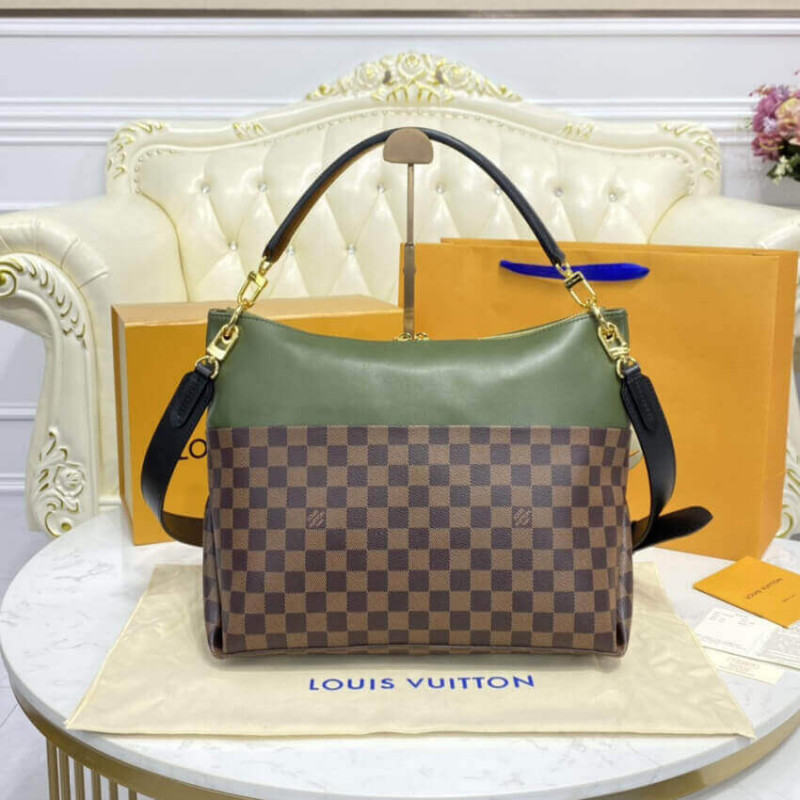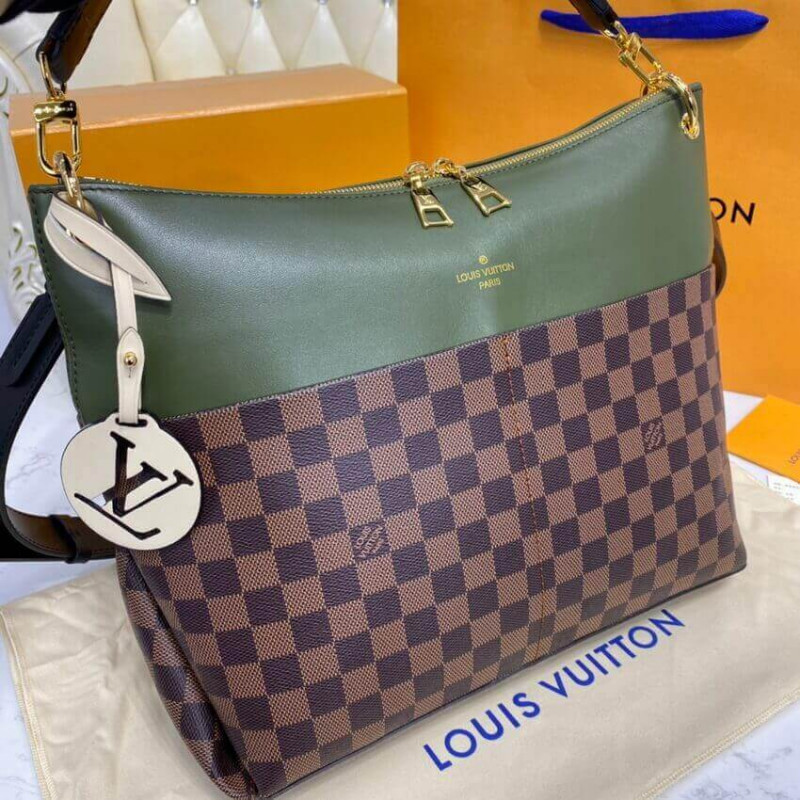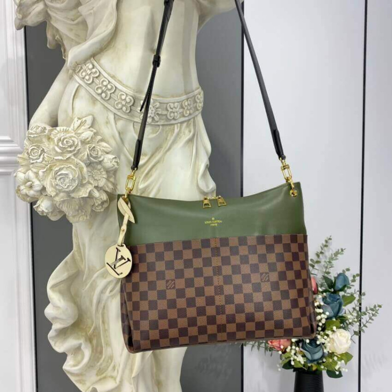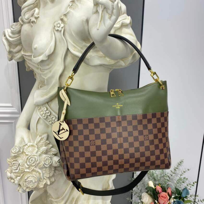 For Fall 2020, Louis Vuitton brings together Damier Ebène canvas with Khaki Green calfskin leather in the generous Maida handbag. The bag’s unexpectedly elegant combination of materials is complemented by an oversized LV charm in off-white and the black of the leather top handle and removable strap. This is a very functional and body-friendly tote.
