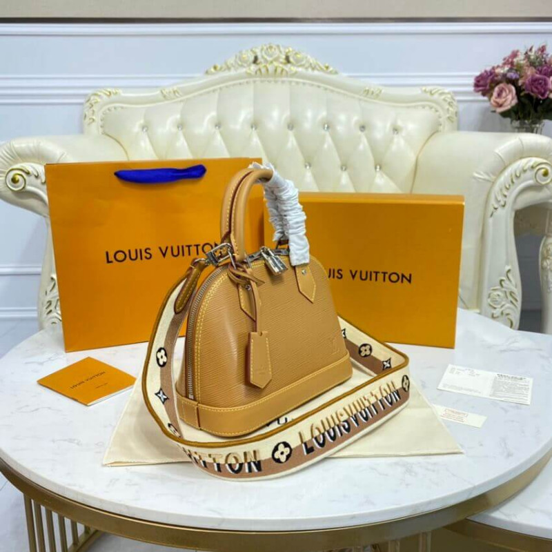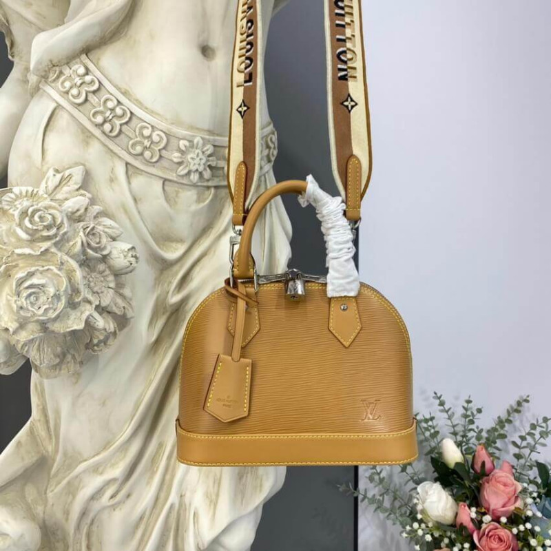 One of the House’s most recognizable bags, the adorable Alma BB handbag gets a sporty makeover thanks to a new Jacquard strap. The fashionably wide strap is embroidered with Louis Vuitton on one side and Monogram Blossoms on the other, and features delicate stitching along its edges. Made from colorful Epi leather, this bag will definitely turn heads.