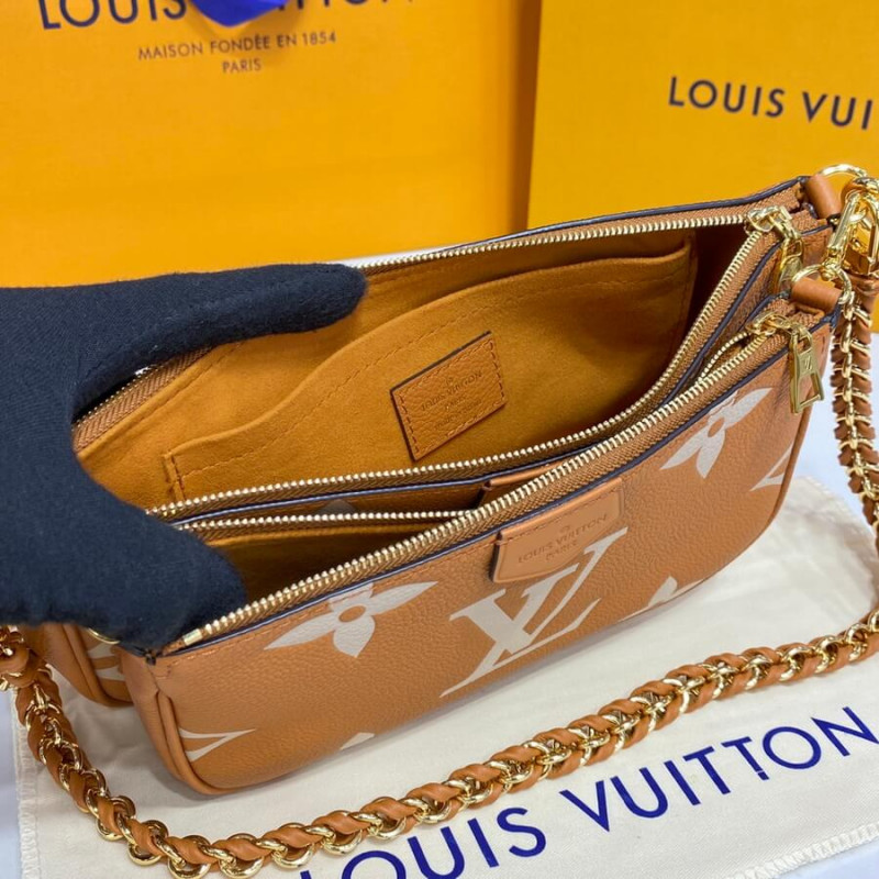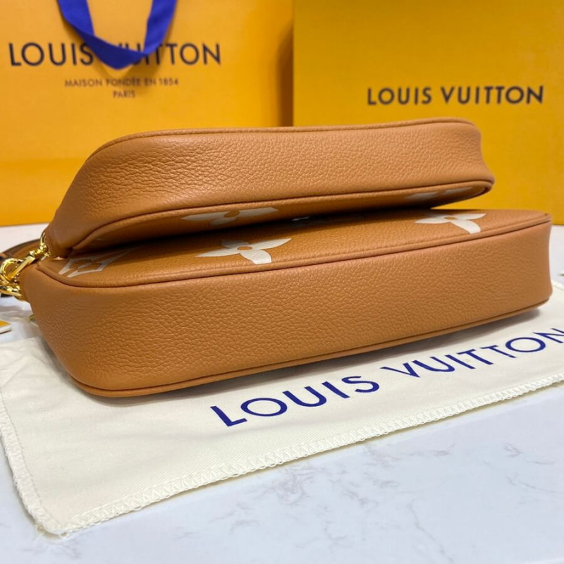 The Multi Pochette Accessoires cross-body bag takes on a striking aspect in embossed black Monogram Empreinte leather, overprinted with the Monogram motif in a cream color. Just the right size to carry a woman’s essentials, this two-in-one bag keeps things organized with its removable pouches. It’s comfortable to wear thanks to its suppleness and light weight.