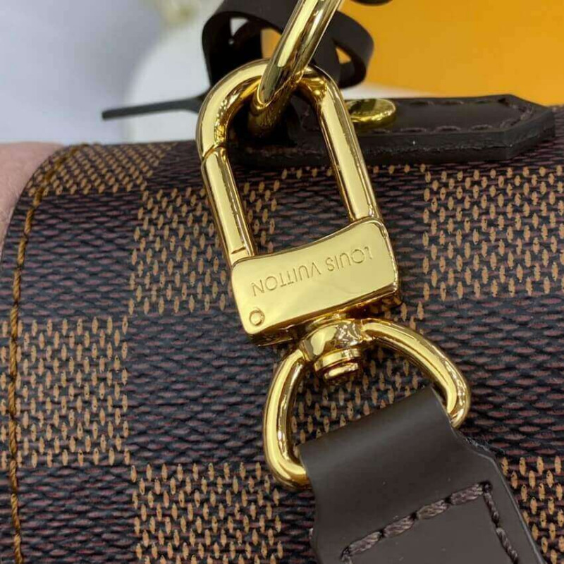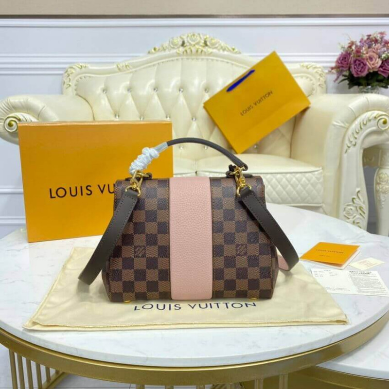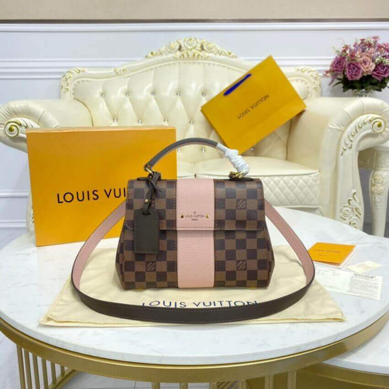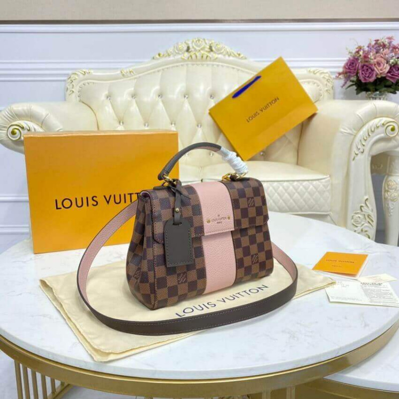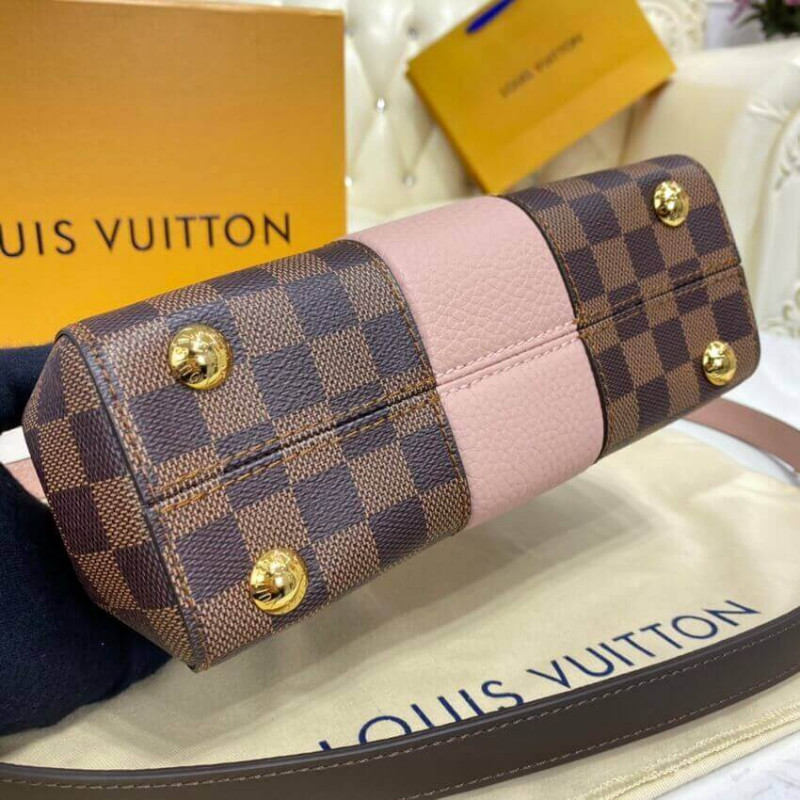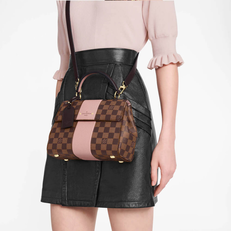 This Bond Street BB is fashioned in a harmonious combination of Damier Ebene canvas and Cuir Taurillon leather and is adorned with a leather nametag and an elegant central stripe signed Louis Vuitton. This one-handled bag offers multiple carry options: by hand, on the elbow with the top handle, or over the shoulder thanks to the removable strap. Adorably compact, it’s large enough to carry essentials such as wallet, keys and phone.