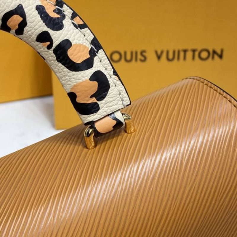 The Fall 2021 Wild at Heart capsule brings an untamed touch to the Twist MM handbag. Fashioned from the House’s emblematic Epi grained leather, this fashionable piece is finished with a luggage-style handle and name tag in a playful leopard print. With a detachable leather strap for ultimate versatility, it is the perfect companion for an autumnal wardrobe.