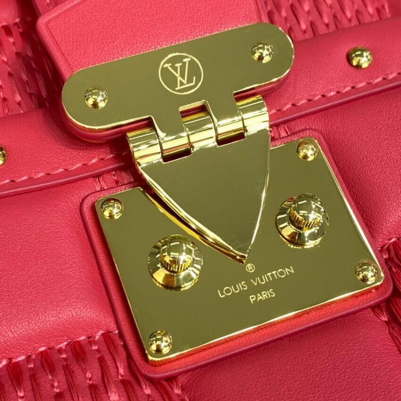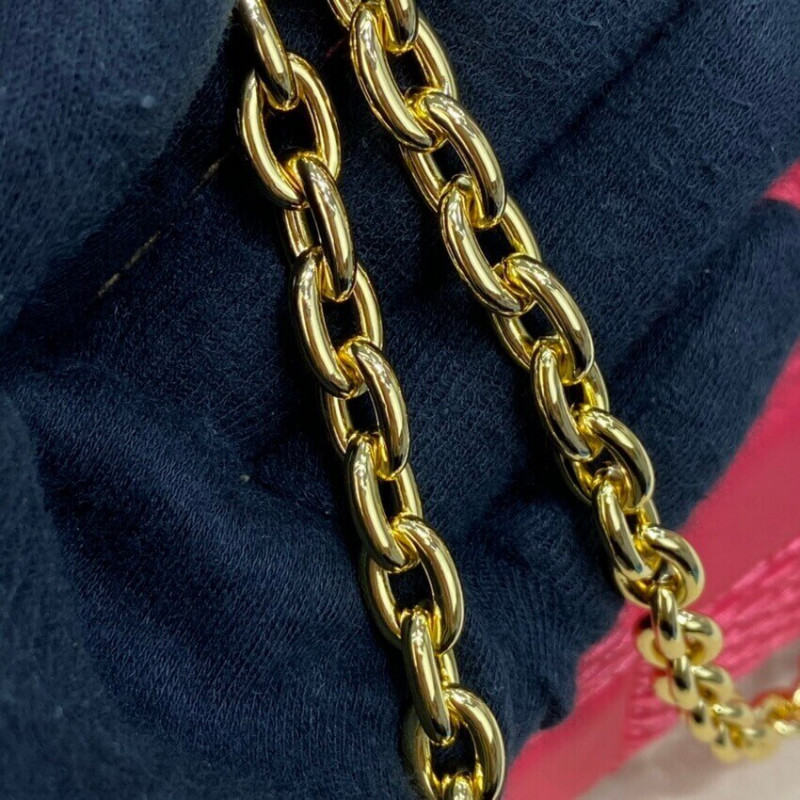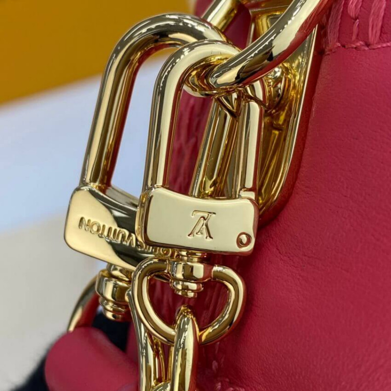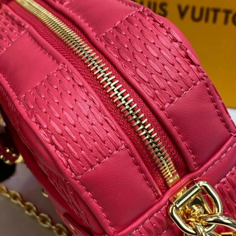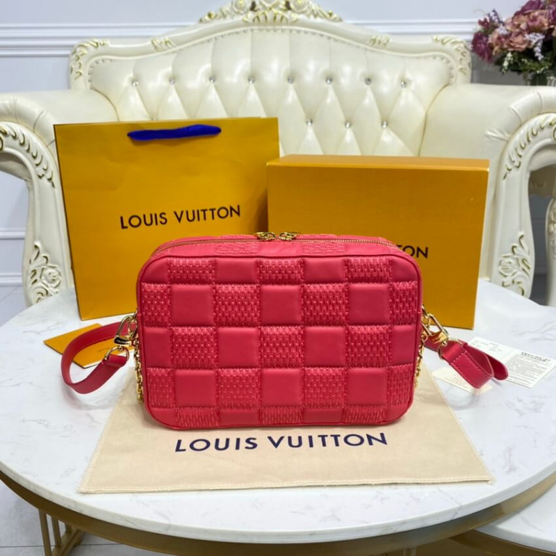 Inspired by the Trocadero camera bag from the House archives, the Troca MM handbag is made from Damier Quilt, a padded lambskin embroidered with an oversized Damier pattern. The bag’s square shape is finished with a gold-color S-lock, as well as studded trim and corners. There’s a removable shoulder chain in addition to the adjustable leather strap.