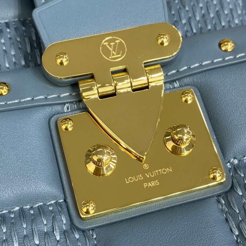 Inspired by the Trocadero camera bag from the House archives, the Troca MM handbag is made from Damier Quilt, a padded lambskin embroidered with an oversized Damier pattern. The bag’s square shape is finished with a gold-color S-lock, as well as studded trim and corners. There’s a removable shoulder chain in addition to the adjustable leather strap.