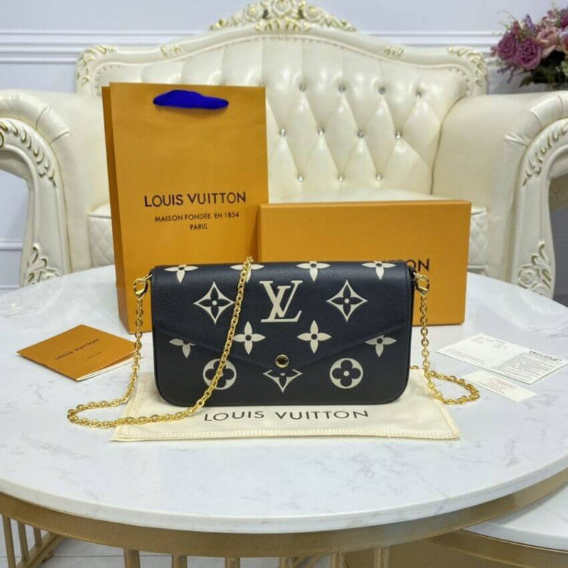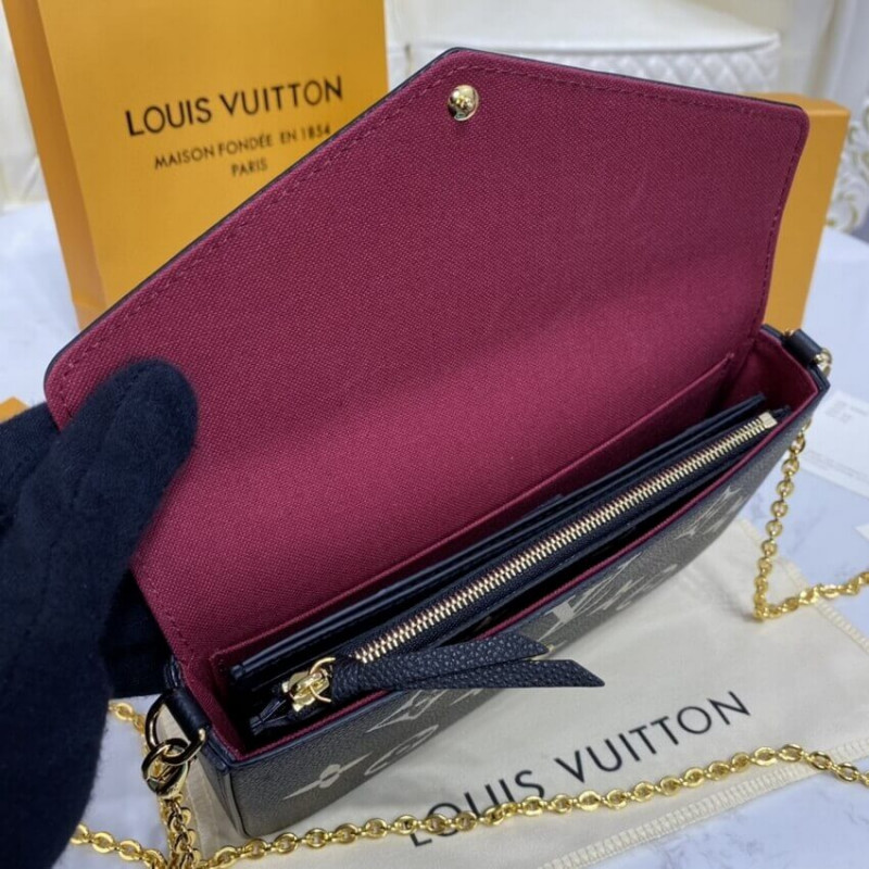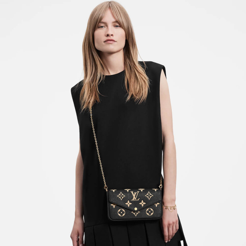 Made from Tourterelle Gray Monogram Empreinte leather, the Pochette Félicie is decorated with a Monogram print in a cream color. This stylish envelope-style pouch features two removable inside pockets. It can be carried as a clutch or worn on the shoulder, thanks to its detachable gold-color chain.