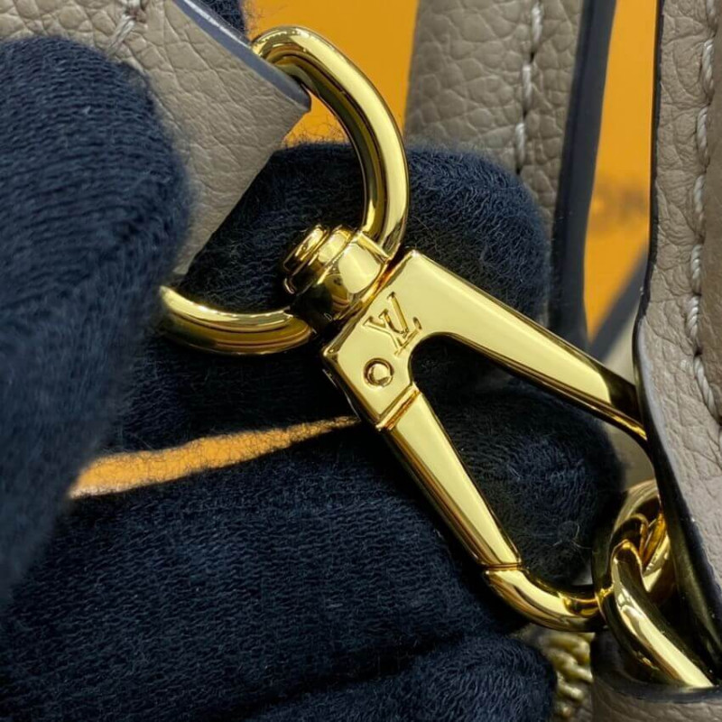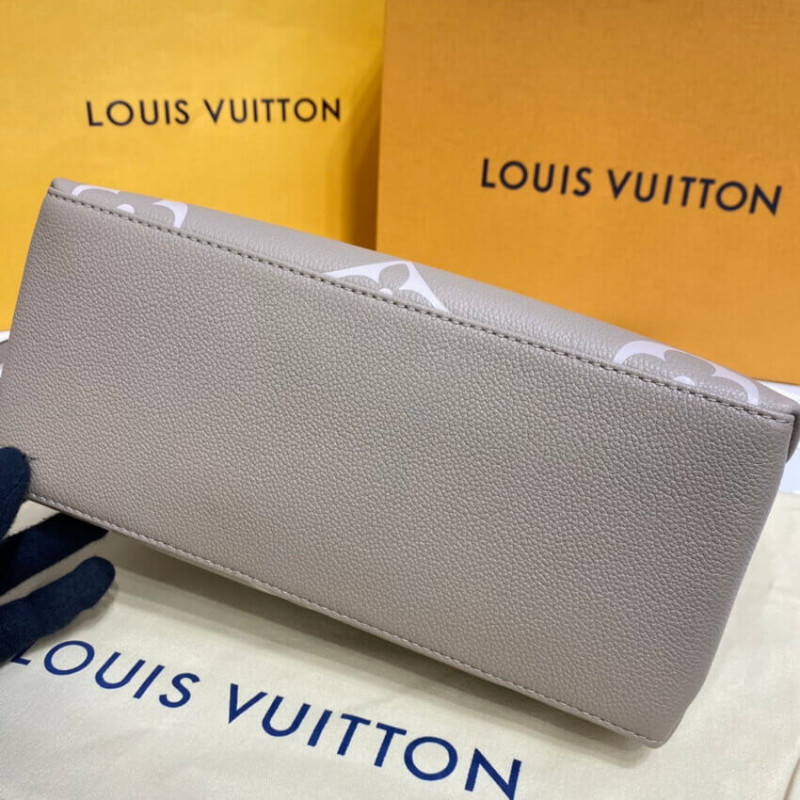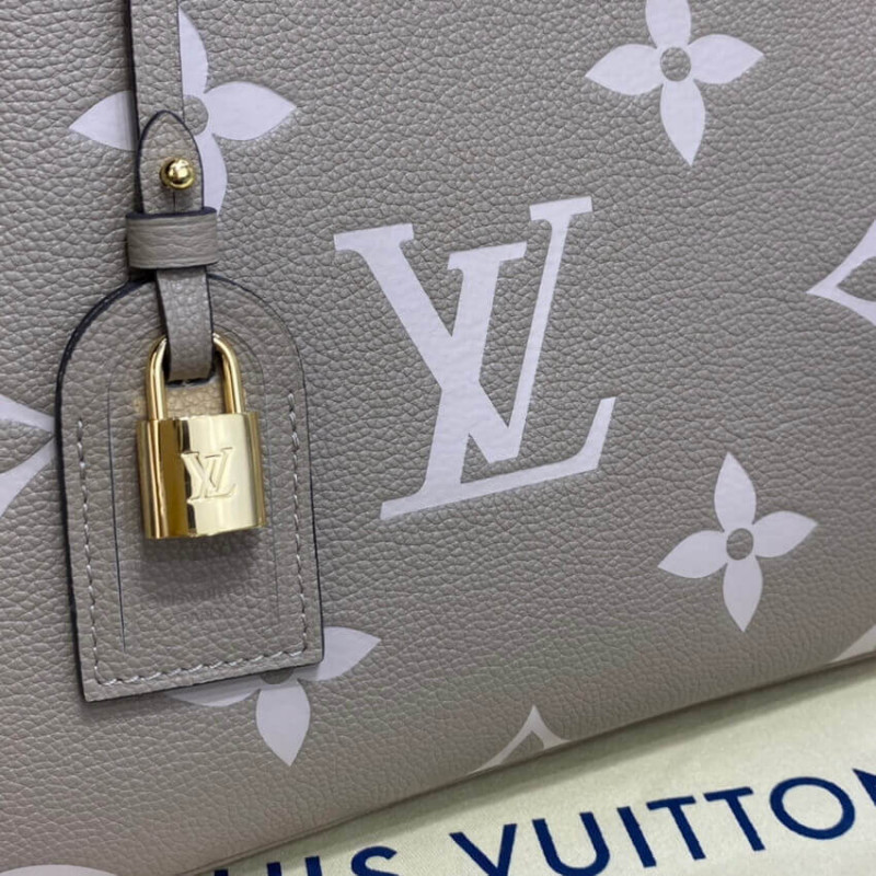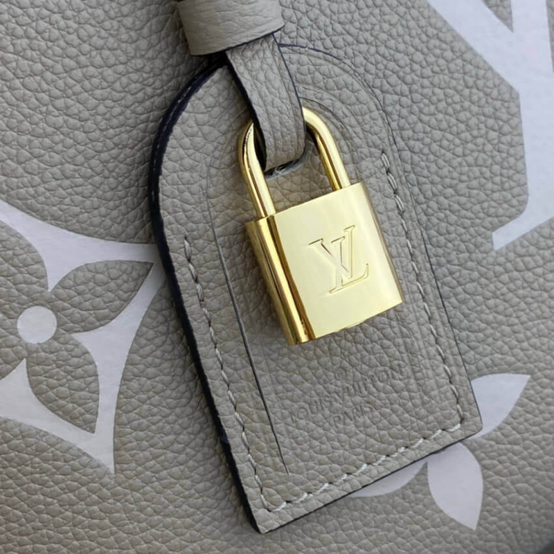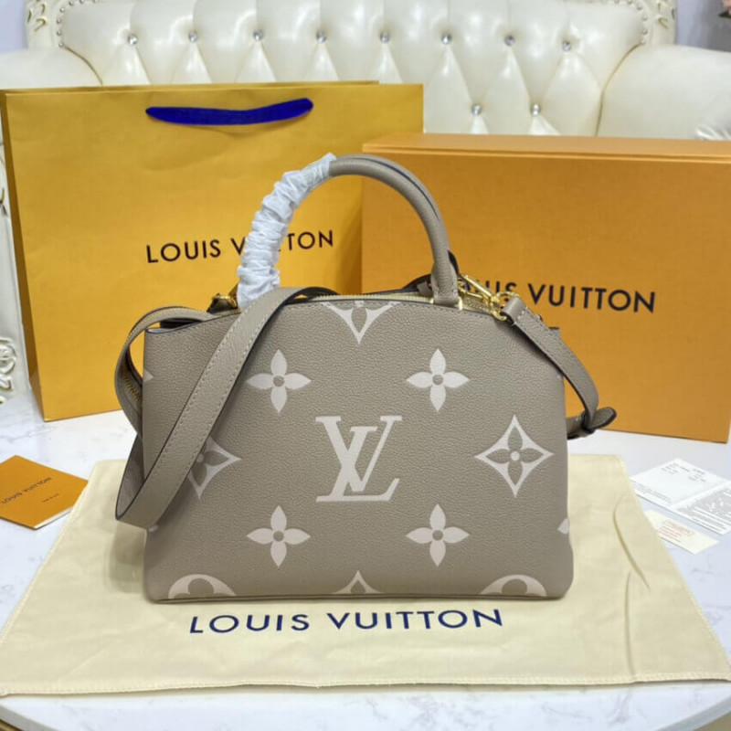 The perfect everyday companion, the smart and sophisticated Petit Palais handbag is fashioned from grained leather with an oversized pattern of Monogram Flowers and LVs printed and embossed on it. The gold-color padlock and leather name tag bring to mind the House’s legacy of fine luggage. A detachable strap can be adjusted for comfortable shoulder and cross-body wear.