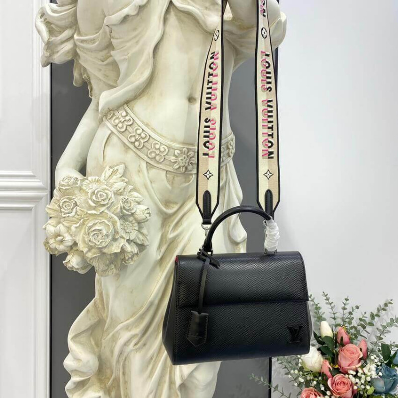 A colorful, crafted jacquard strap gives this edition of the classic Cluny BB handbag a contemporary twist. Fashioned from the House’s revisited slanting Epi leather, the bag also features an LV signature in smooth resin and a surprising bright-pink lining. The reversible strap can be detached for a dressier look, making this a versatile model for every occasion.