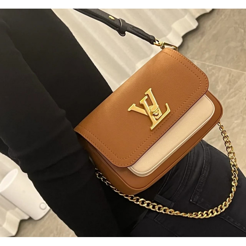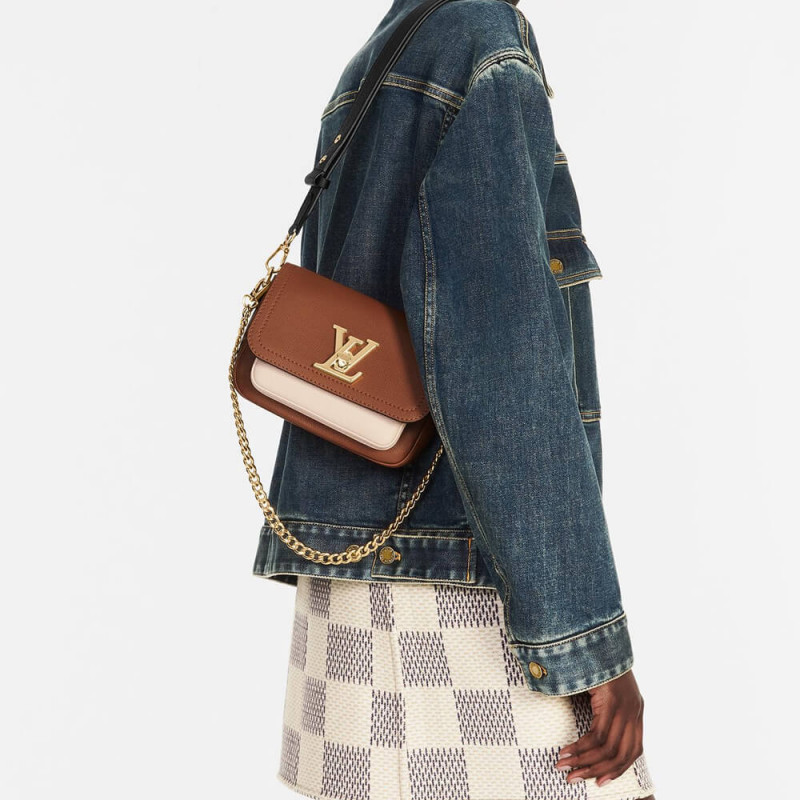 Fashioned from soft grained calf leather, the Lockme Tender cross-body bag comes with a wide removable and adjustable strap in addition to its gold-colored chain. Each side of this versatile strap has a different color. A metallic D-ring on the strap enables to personalize it with a charm.