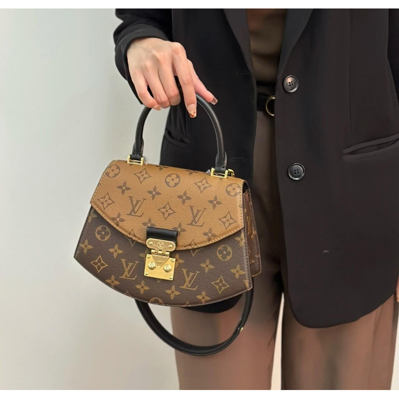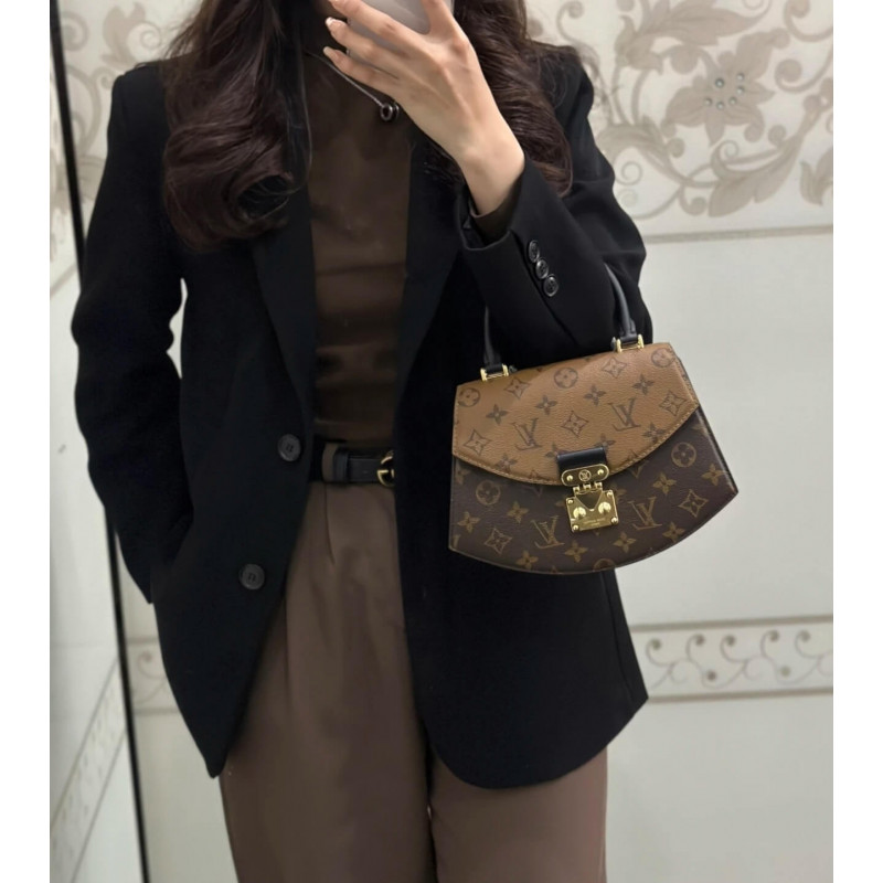 The Tilsitt handbag in Monogram and Monogram Reverse canvas is an ideal city bag. Instantly recognizable thanks to its geometric curved shape, it’s inspired by a House model from 1988. The smart strap and a pivoting top handle makes this new model very practical. The flap features the House’s emblematic S-lock closure.