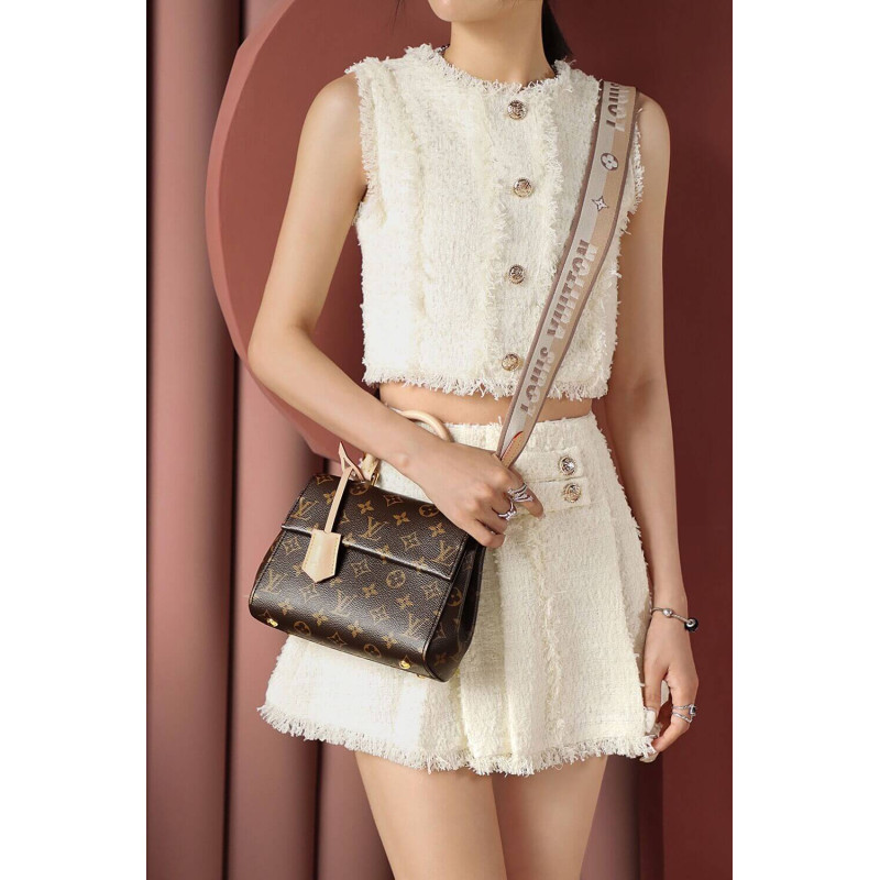 The adorable Cluny Mini handbag in iconic Monogram canvas is designed to delight LV lovers. A perfect little bag for daily wear, it features a signature Toron handle and key bell in the Maison’s classic natural leather. A textile strap enriched with a woven "Louis Vuitton" can be added or detached, thus enhancing the bag’s versatility.